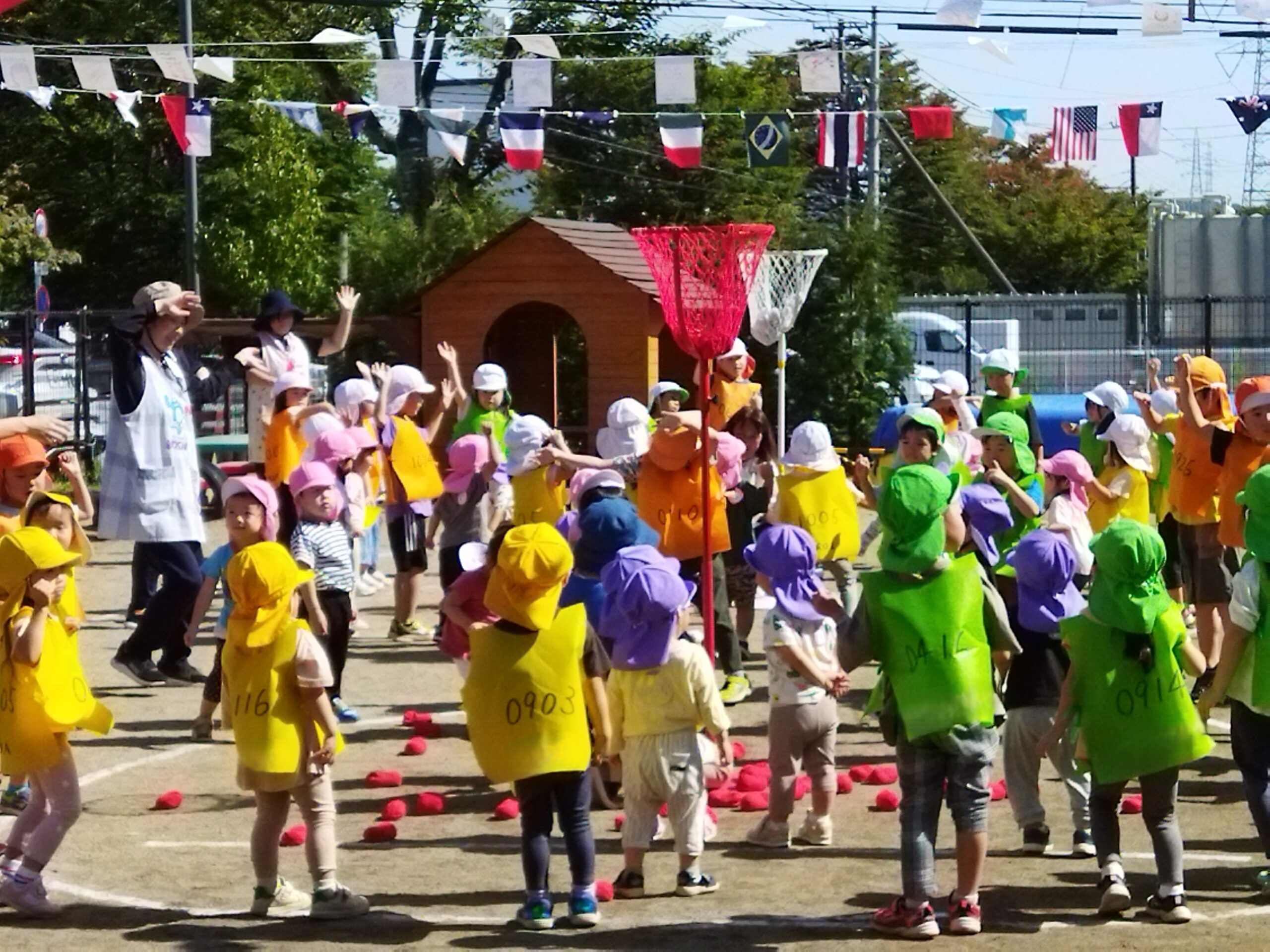 今日は未満児さんも玉入れ練習に参加🔴⚪
