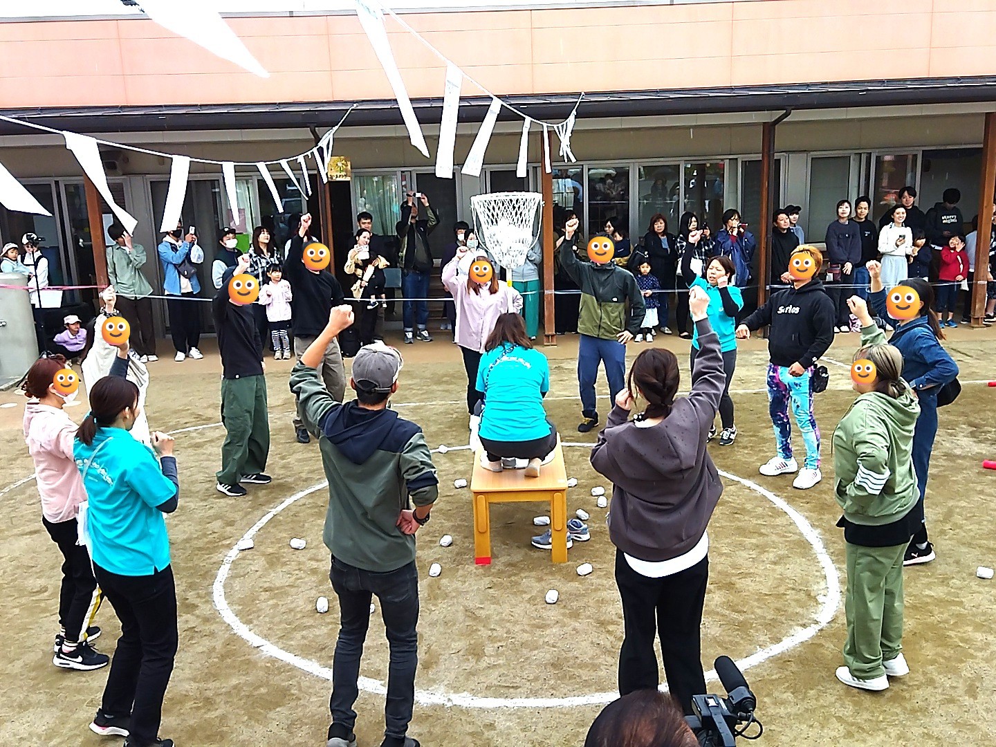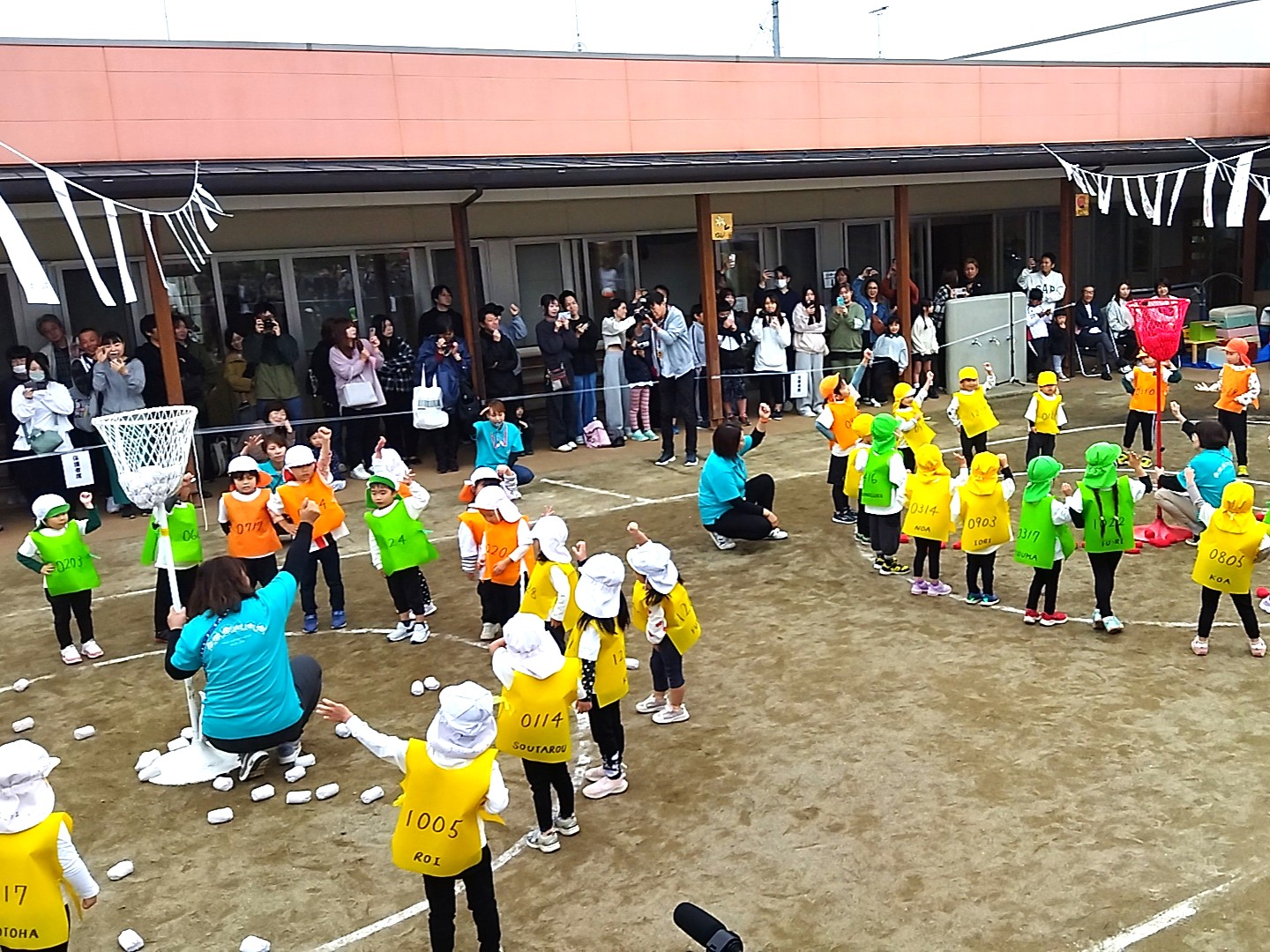 保護者も子どもたちと同じ曲で、ダンス&玉入れ🔴⚪