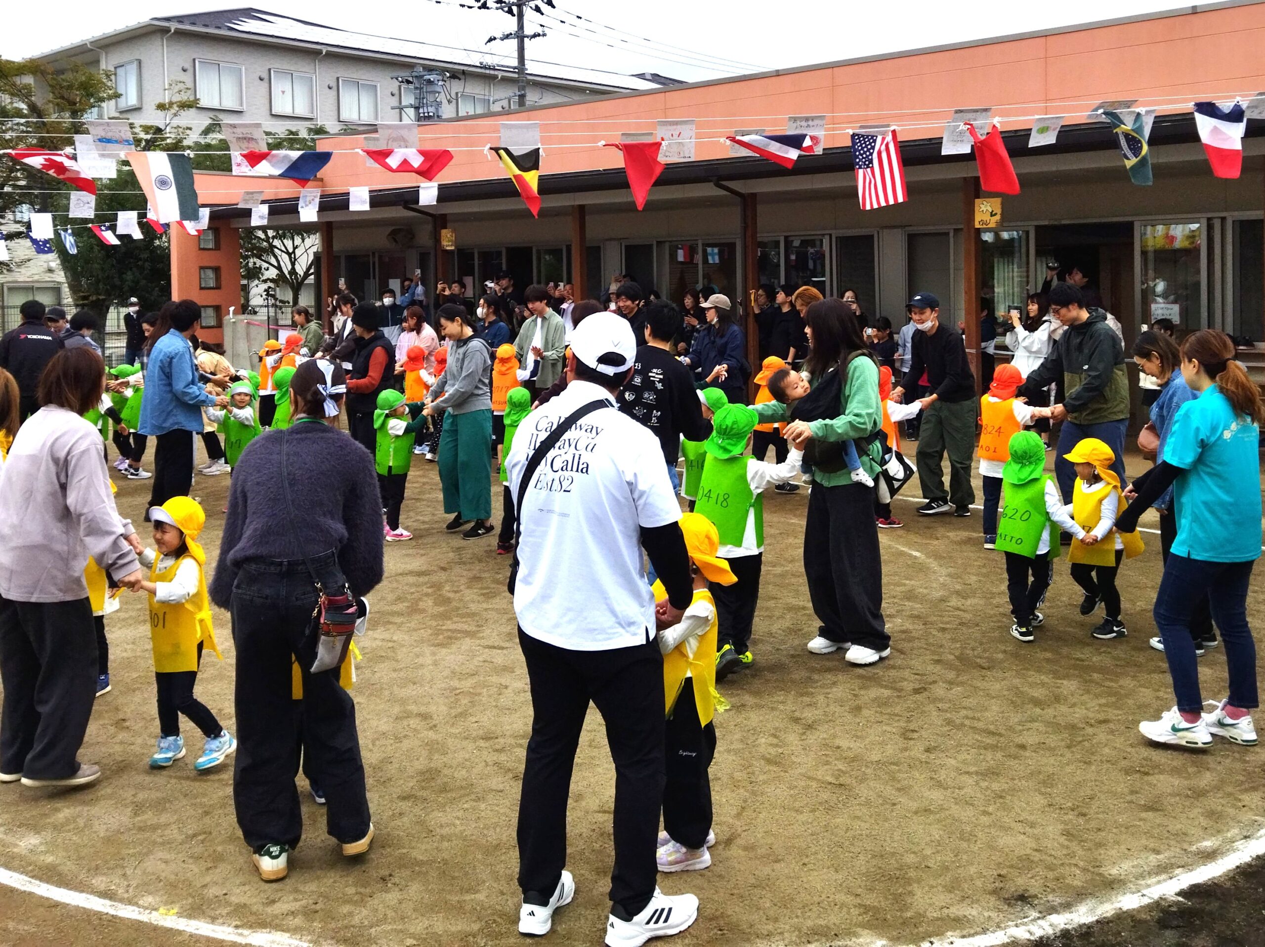 保護者も子どもたちと同じ曲で、ダンス&玉入れ🔴⚪
