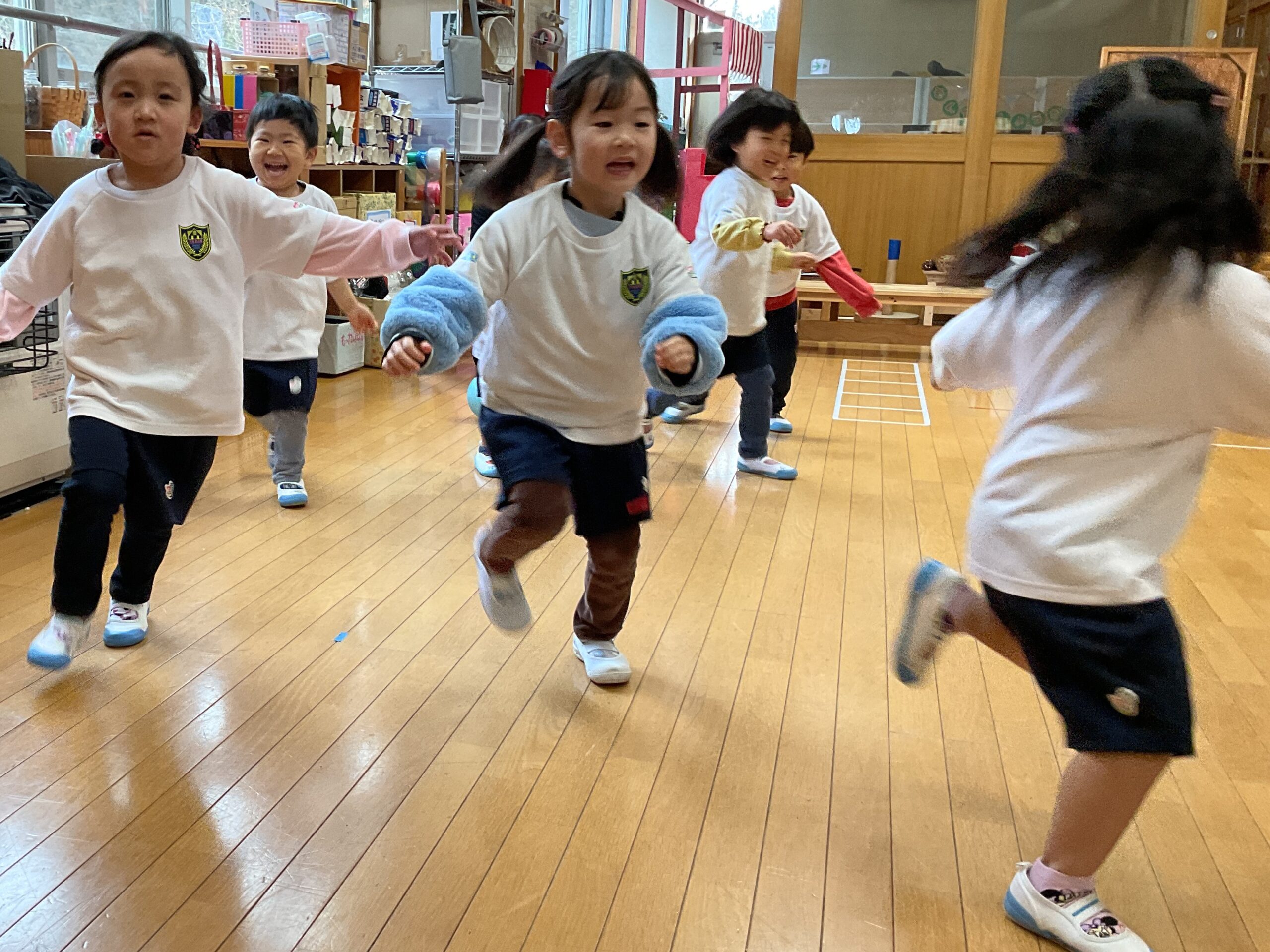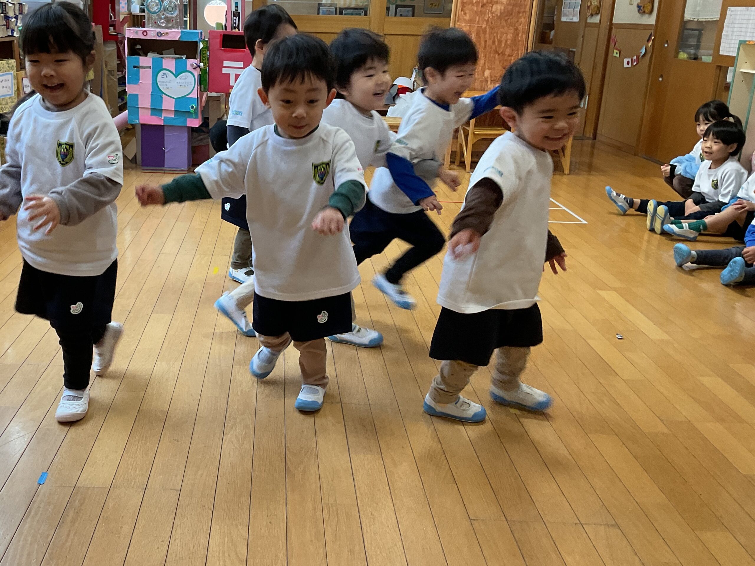 うみ組さん(3歳児)の体操教室。