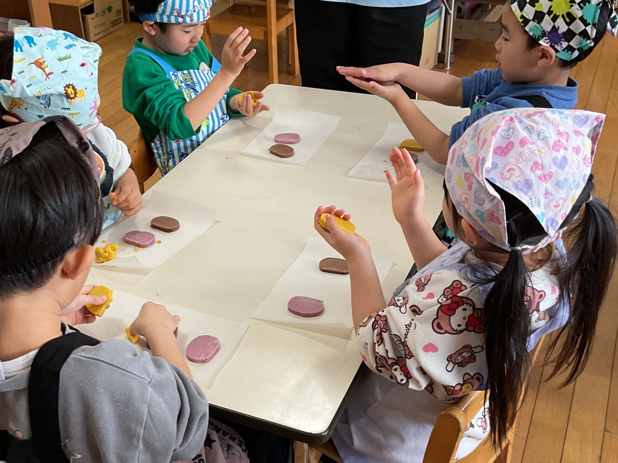 たいよう組さん(5歳児)が給食先生と一緒におやつのクッキー作りをしました♬