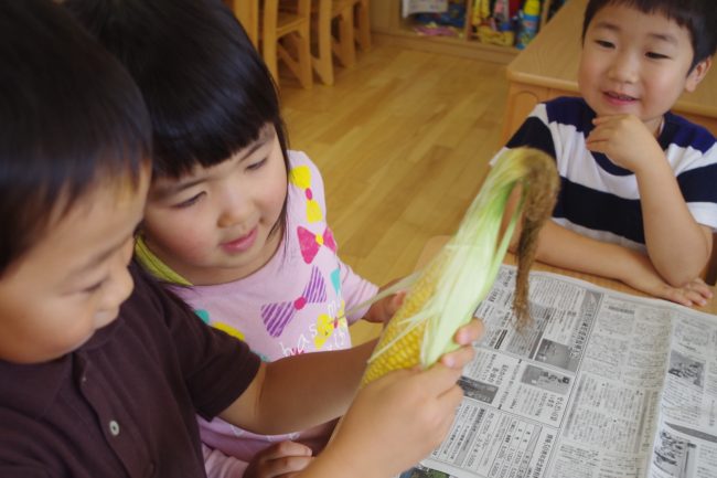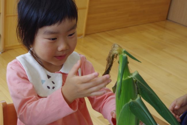 収穫したトウモロコシは、そら組さんだけで食べちゃいました!!
