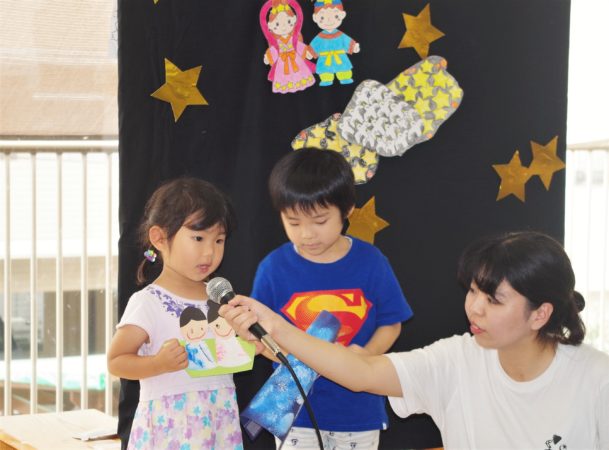 そんな今年の「七夕の会」では七夕に関するお話しを聞いたり、歌を歌ったり、クイズに答えたりなどなど、、、