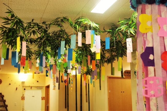 みんなが作った七夕飾りや短冊が様々な所に飾られているので、是非見て下さいね~。