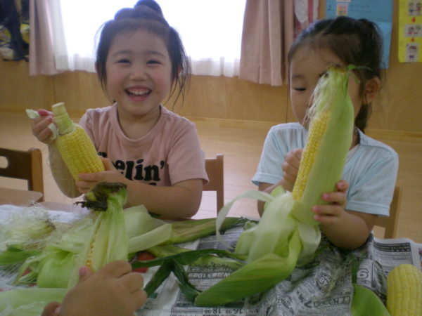 トウモロコシは、おやつの時にみんなでおいしく食べました!
