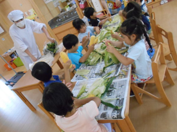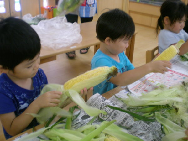 3歳のばら組🌹さんでトウモロコシの皮をむきました。
