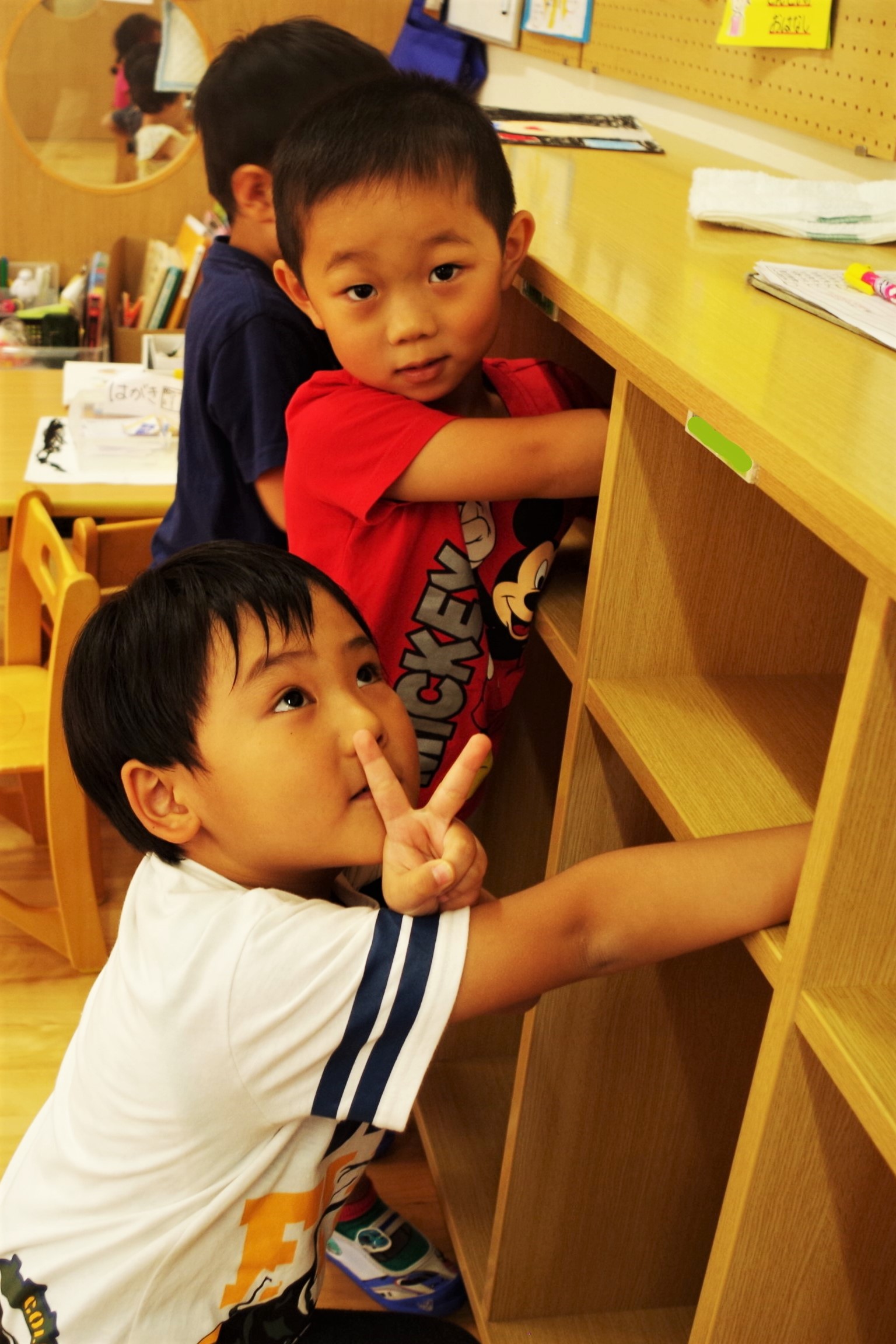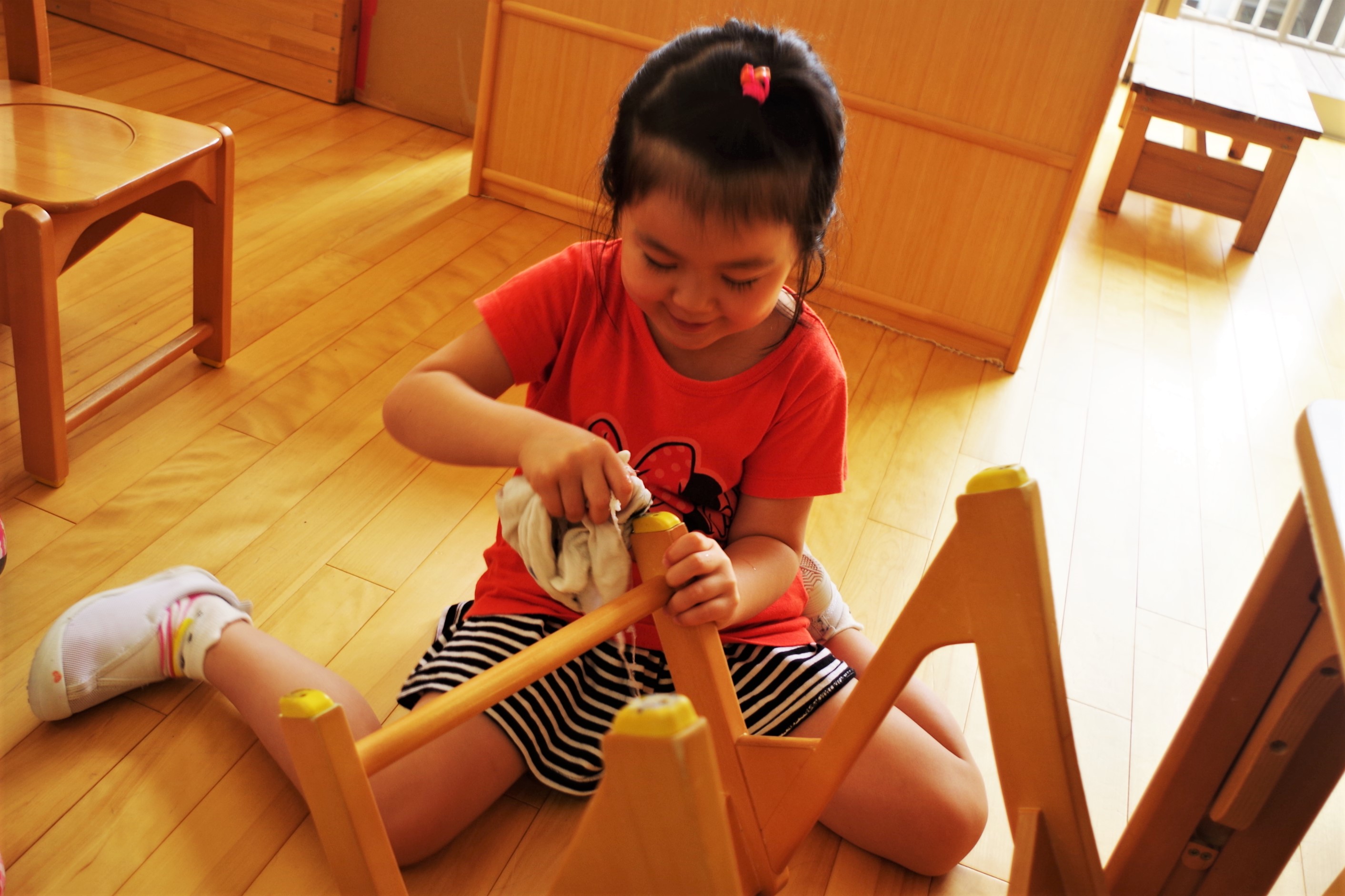 今日、そら組(4歳児クラス)さんではお盆の前にお部屋の「クリーニング大作戦」を行いました!