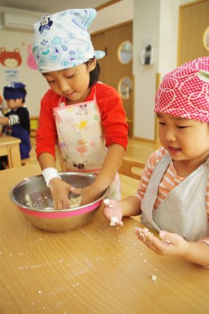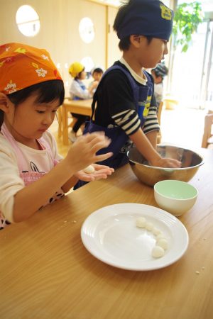 昨日、そら組さんでは白玉団子作りをしました。