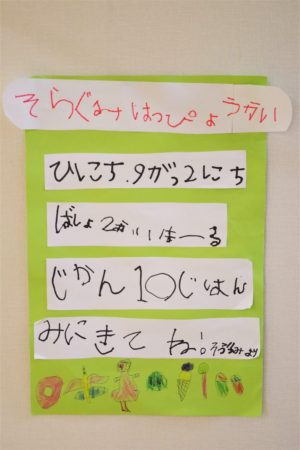 良く見てみると、「そらぐみ はっぴょうかい」の文字!