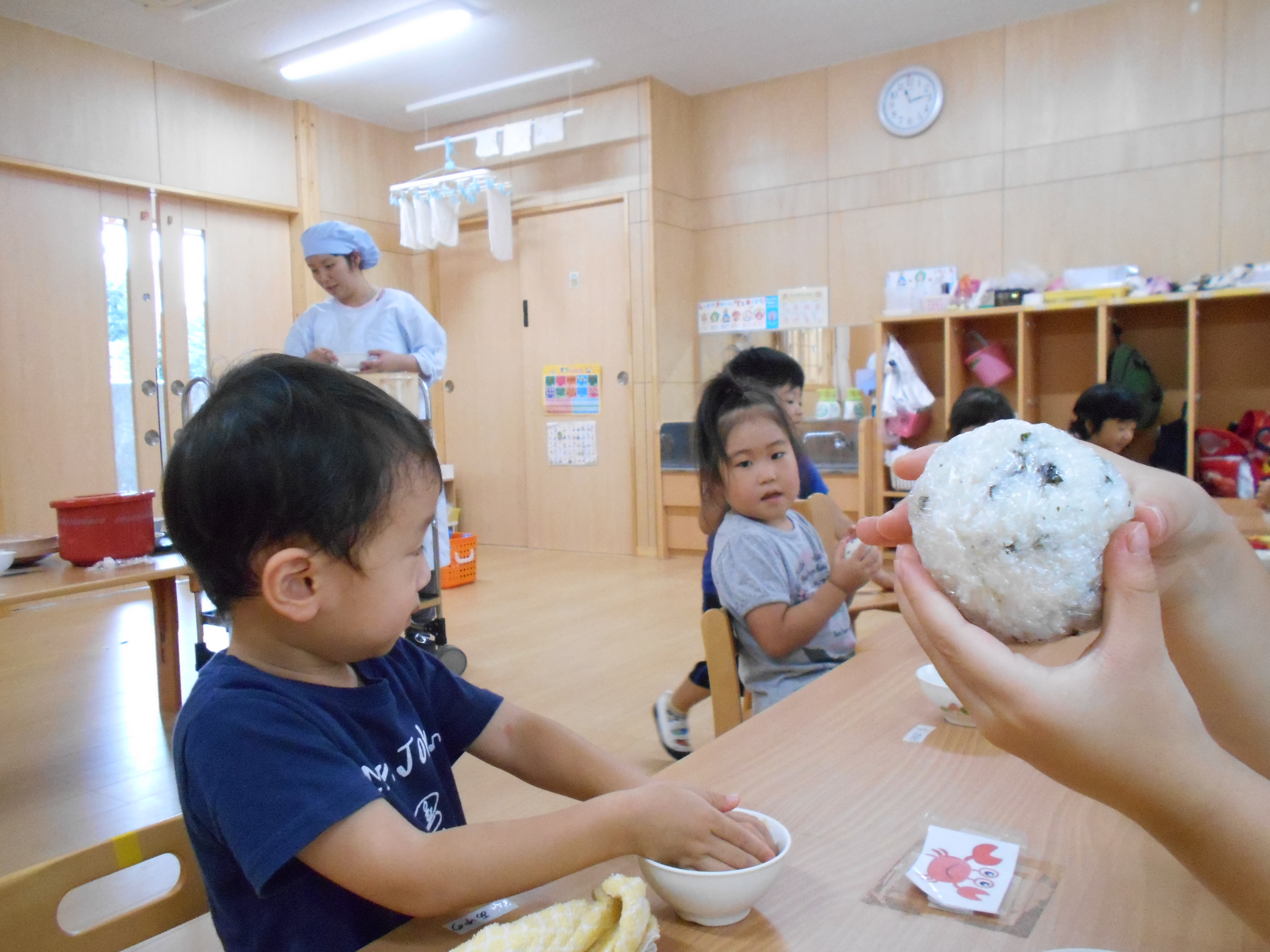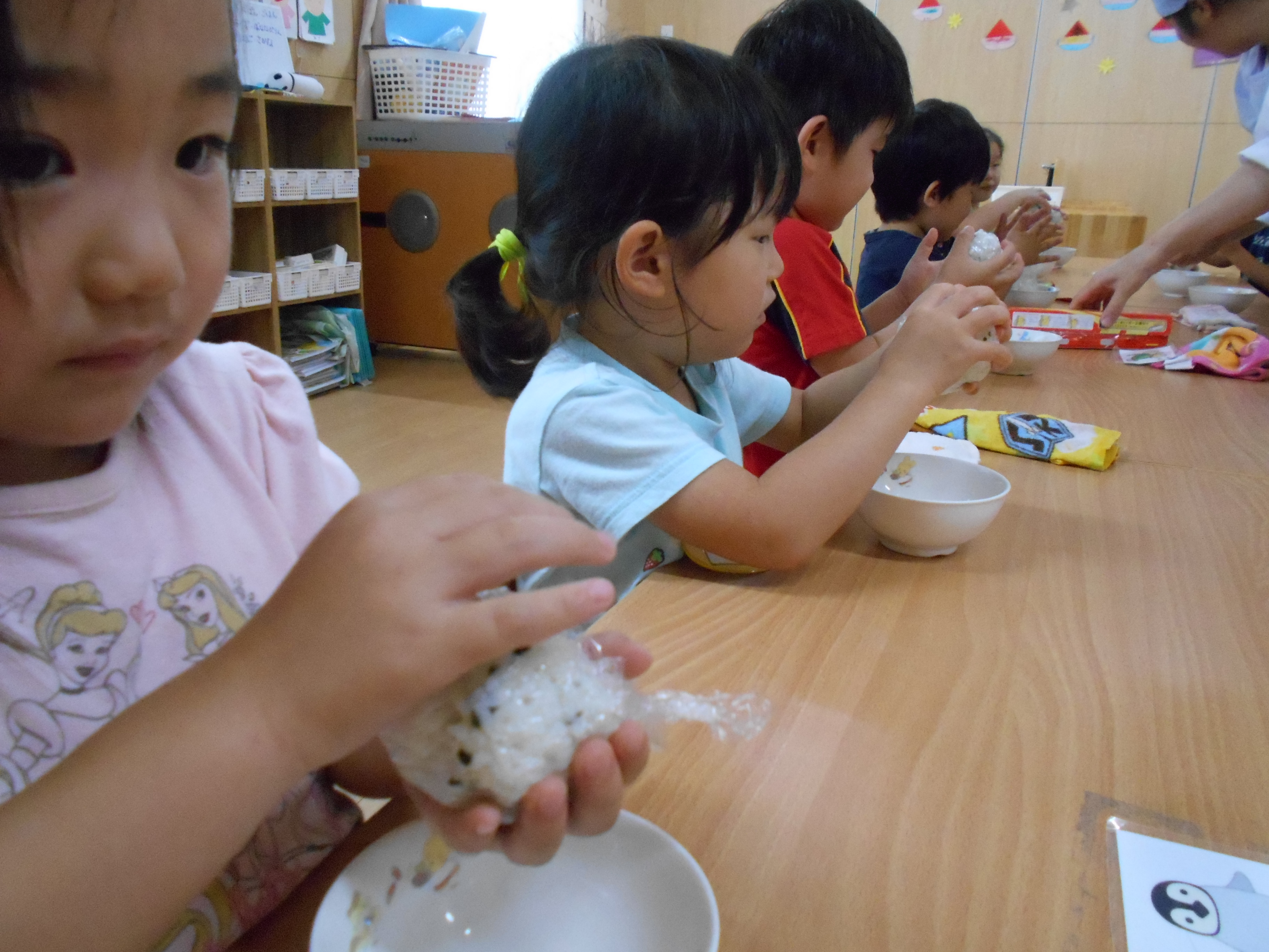 ばら組(3歳児)がおにぎり作り🍙に挑戦しました。