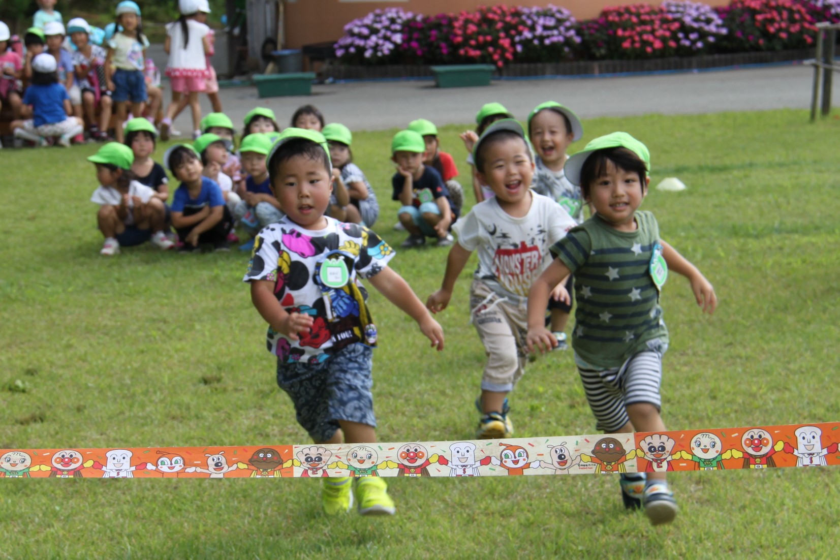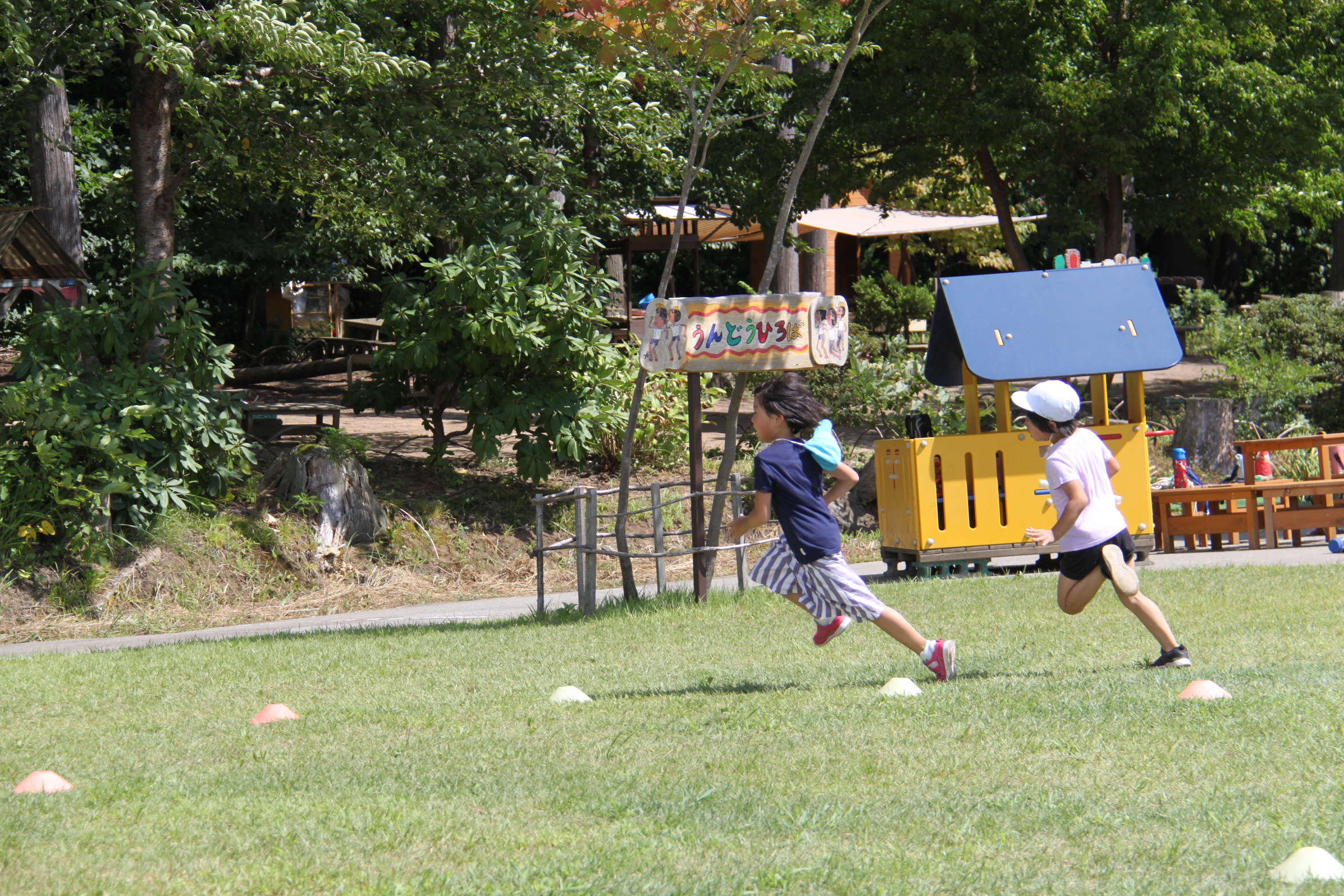 運動会も近づき、前庭ではかけっこが盛んです。小さい子たちにとって大事なことはまっすぐ走ること⁉
