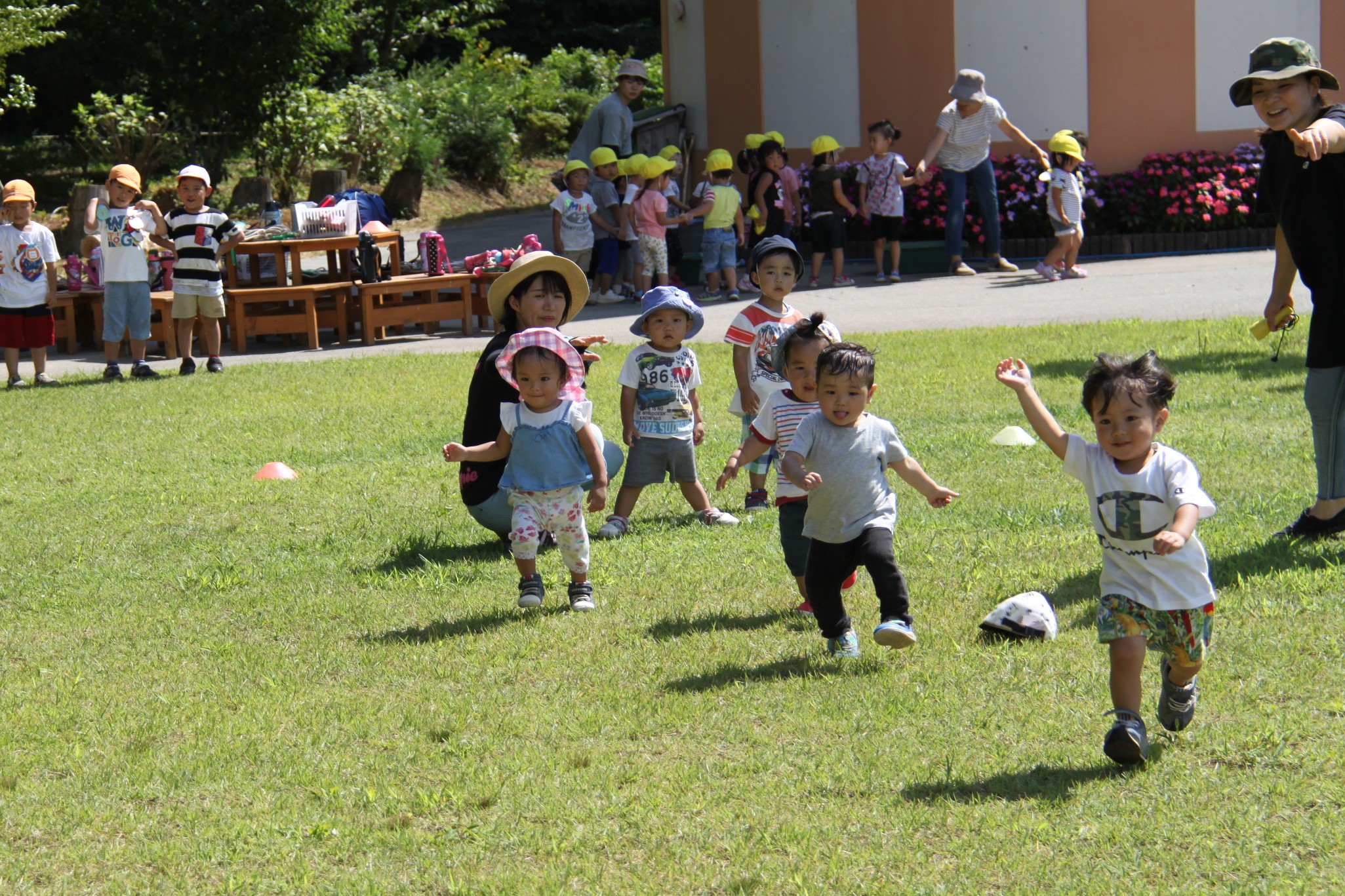 見事ゴールすると年長のお姉ちゃんたちが迎えてくれます。