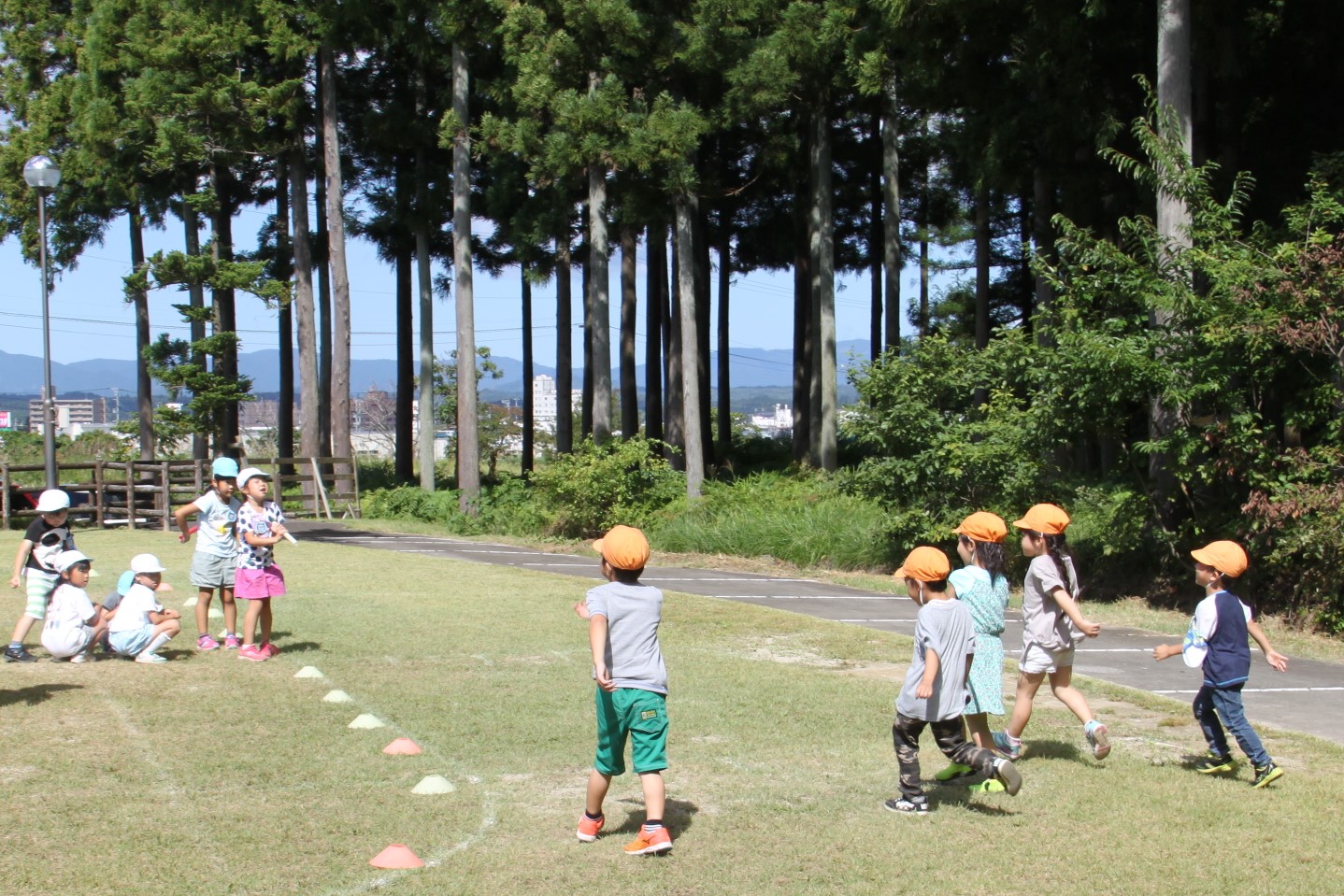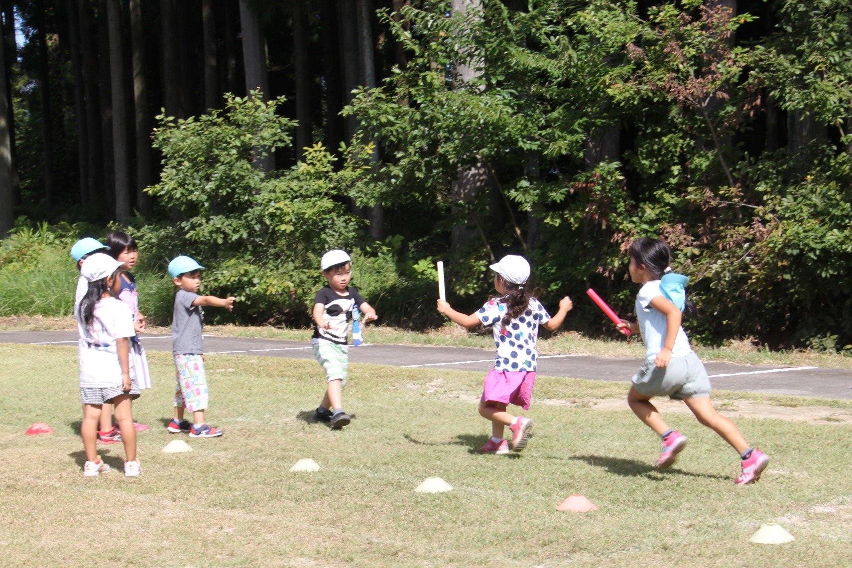そこですぐに始まったのが年長児のリレーごっこ。