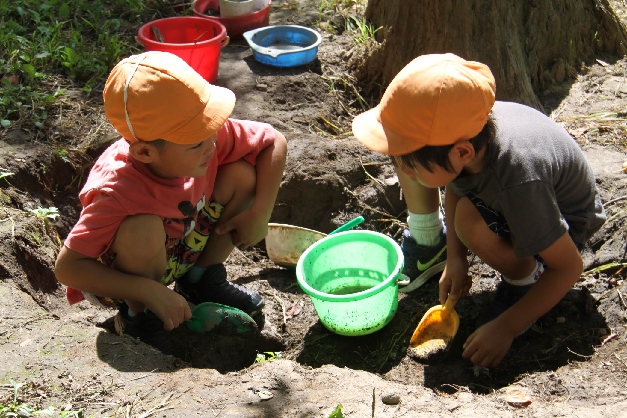 森を見渡せばいつもの虫取りやごちそうづくり。