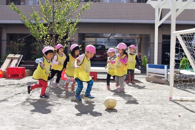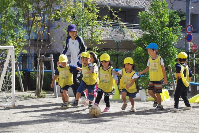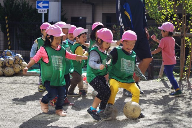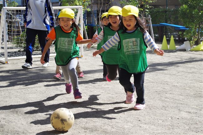 サッカーコーチを招いて定期的にサッカーをして遊んでいます。