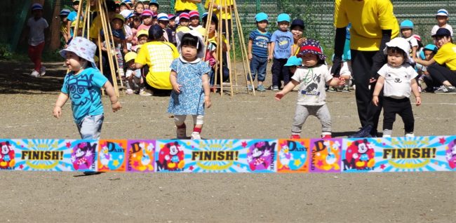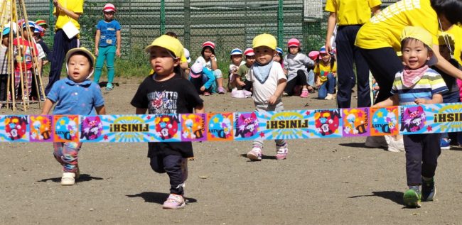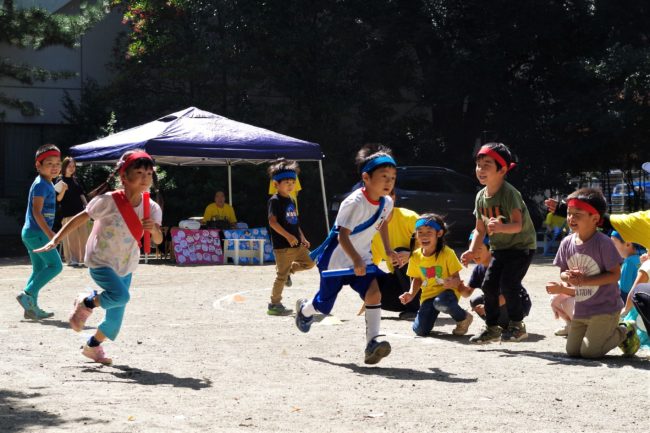 かけっこも笑顔が!! たいよう組(5歳児)さんが行う応援合戦は、