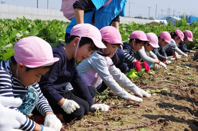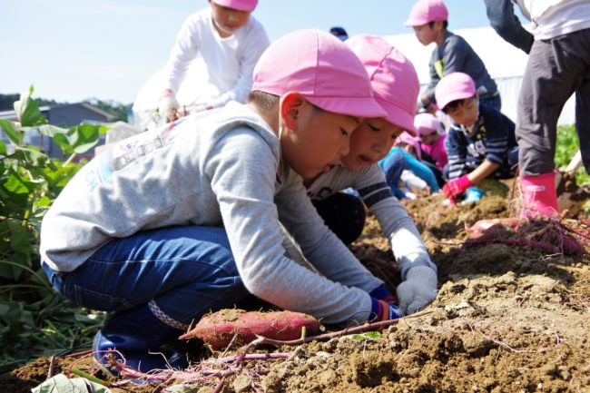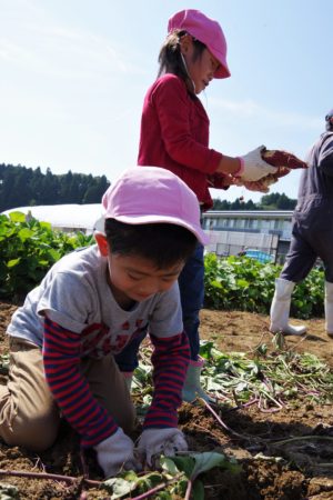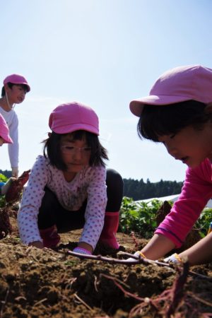 先日、たいよう組(5歳児)さんがバスに乗って芋掘り遠足に行ってきました!