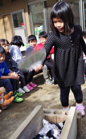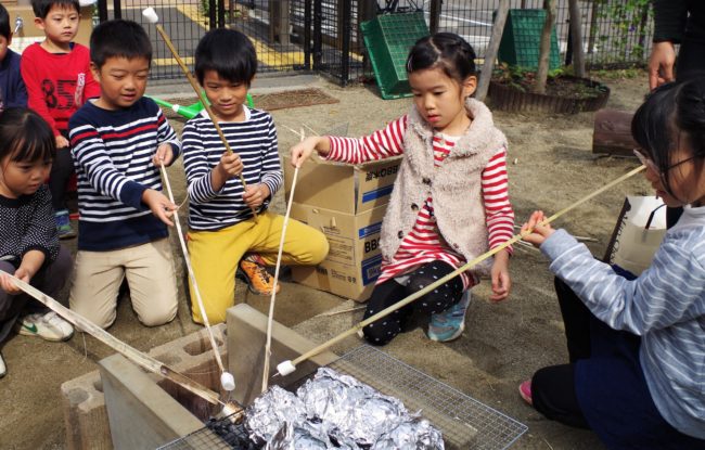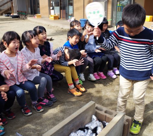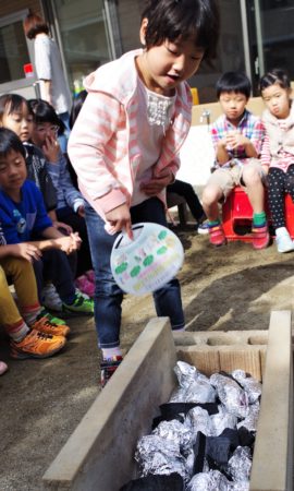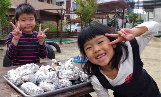 先日、たいよう組(5歳児)が掘ってきてくれたお芋を園庭で焼きました!