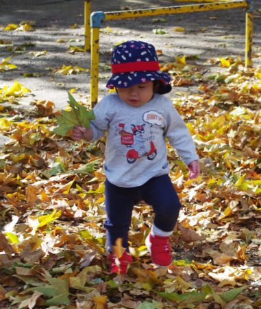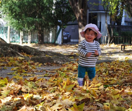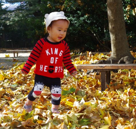 落ち葉も沢山あり、近所の公園はお散歩の人気スポット!