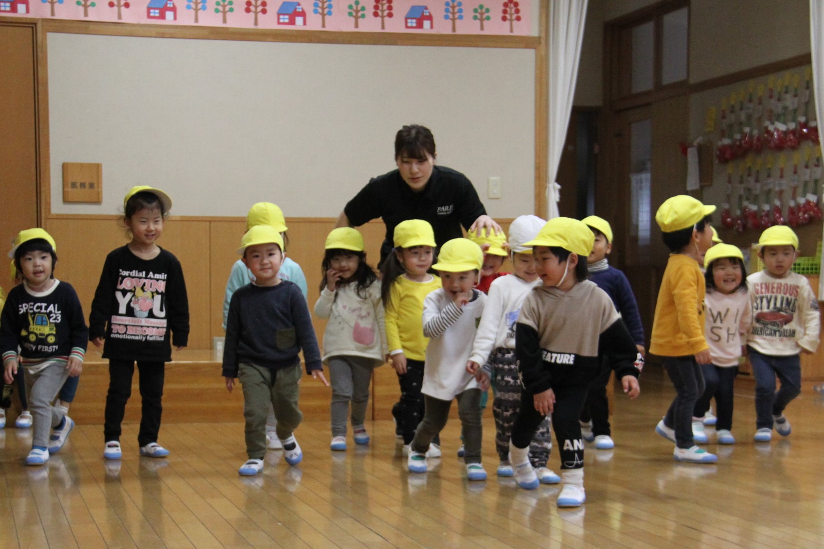「そしたら、先生が1時って言ったら1歩前に、2時って言ったら、2歩前に行くんだよ。」