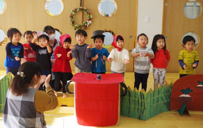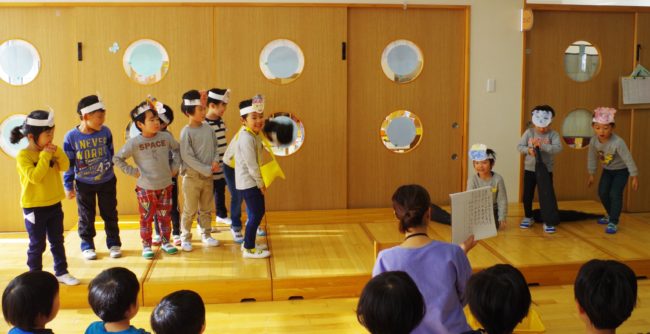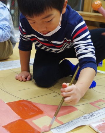以上児さんは練習の間に自分達で大道具を作ったり、
