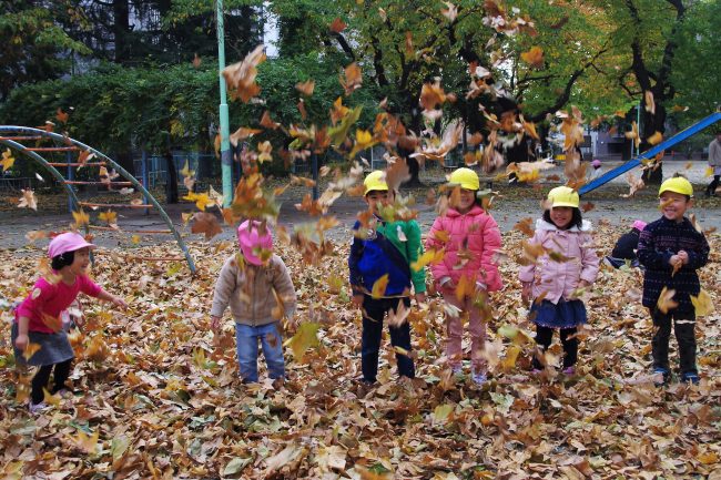 近所の公園は落ち葉がどんどん増えて、子ども達も大喜び!
