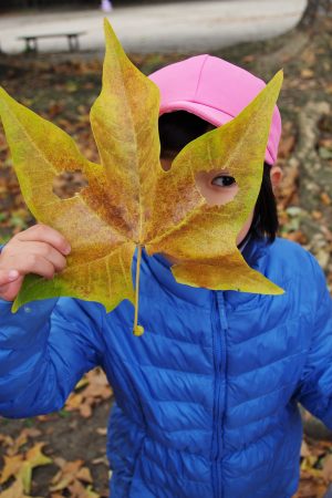 落ち葉のお面はこんな感じ!