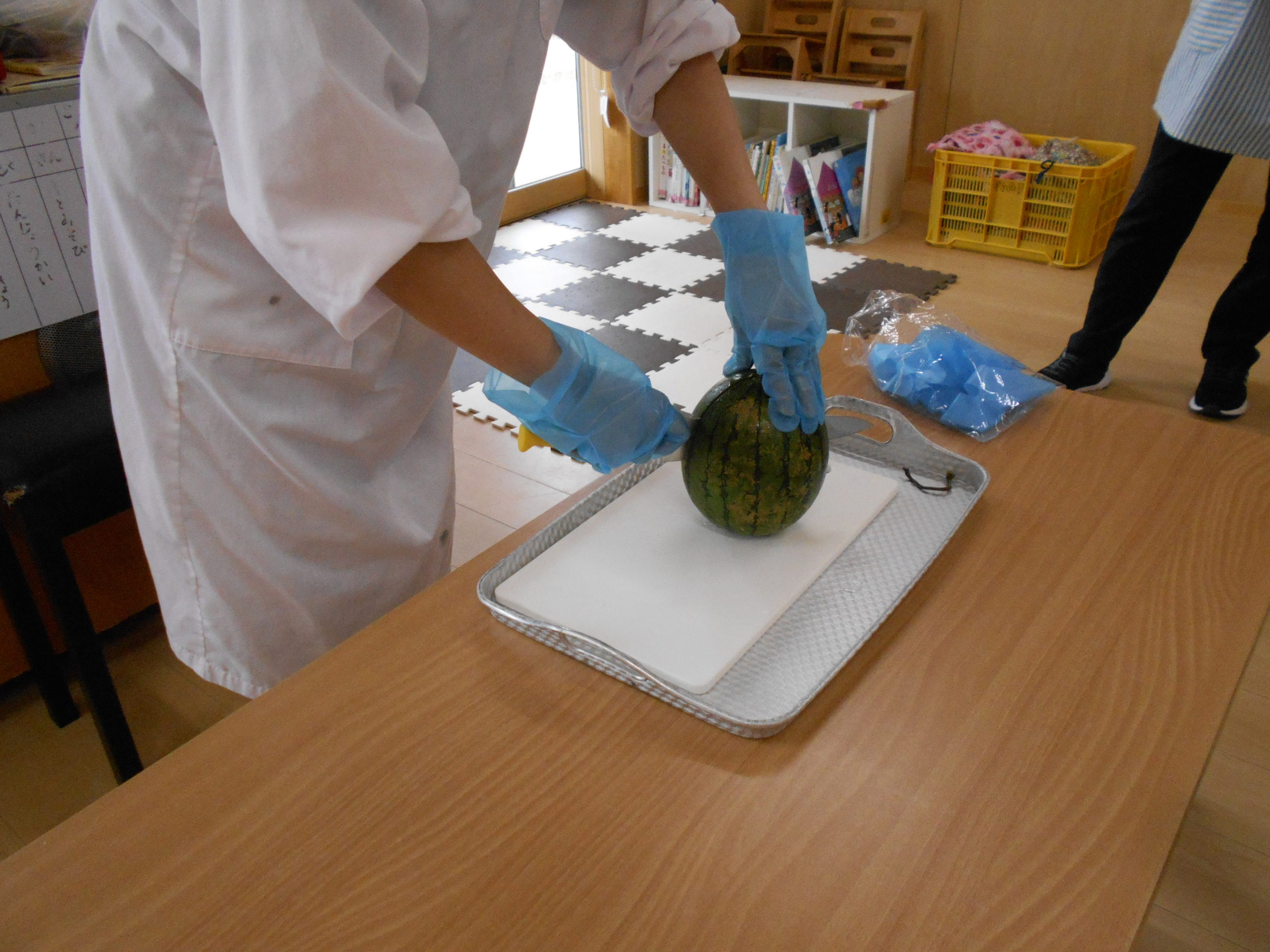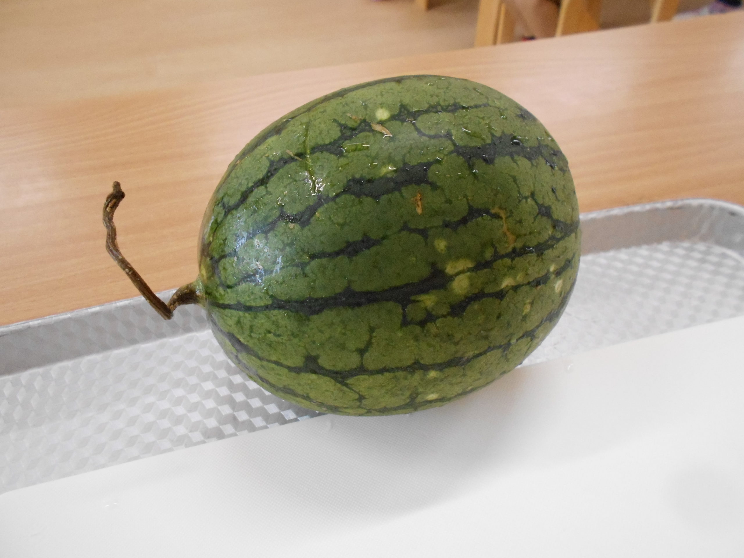 お部屋でスイカを切ってみました~