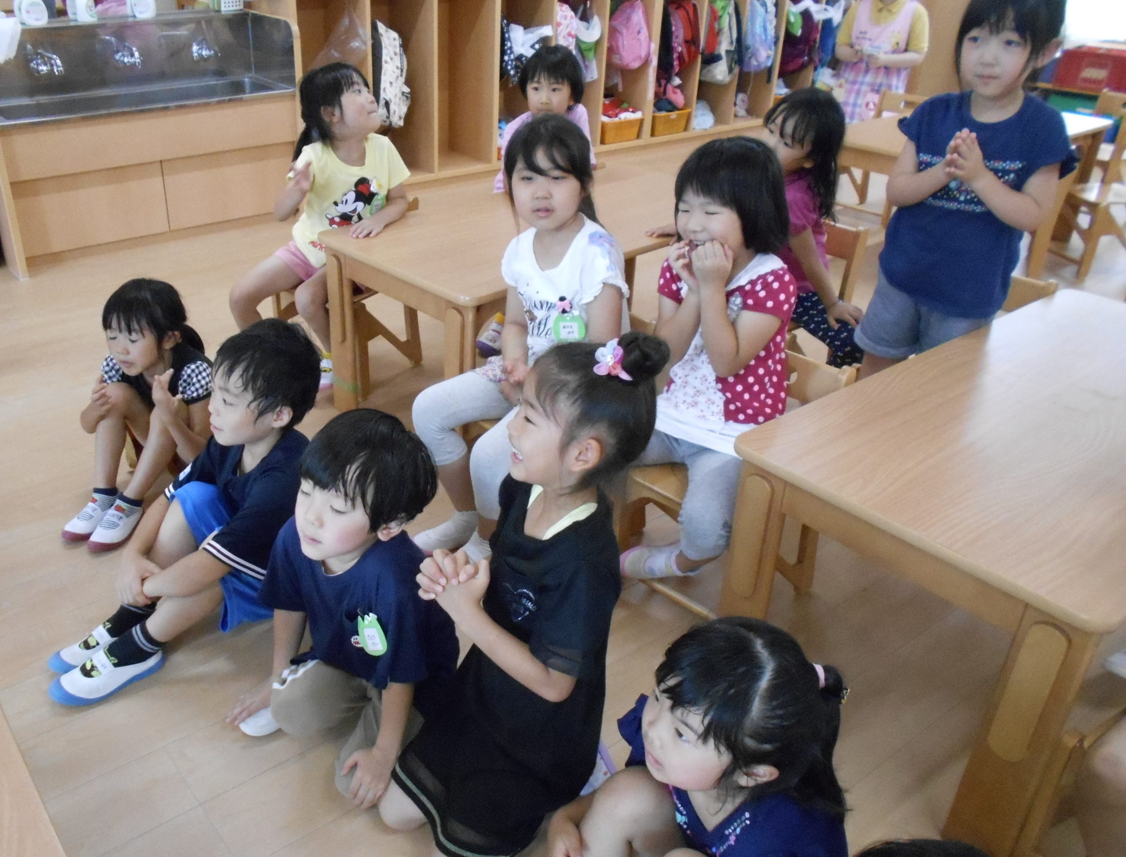 ひまわり組のみんなで、いただきま〜す。