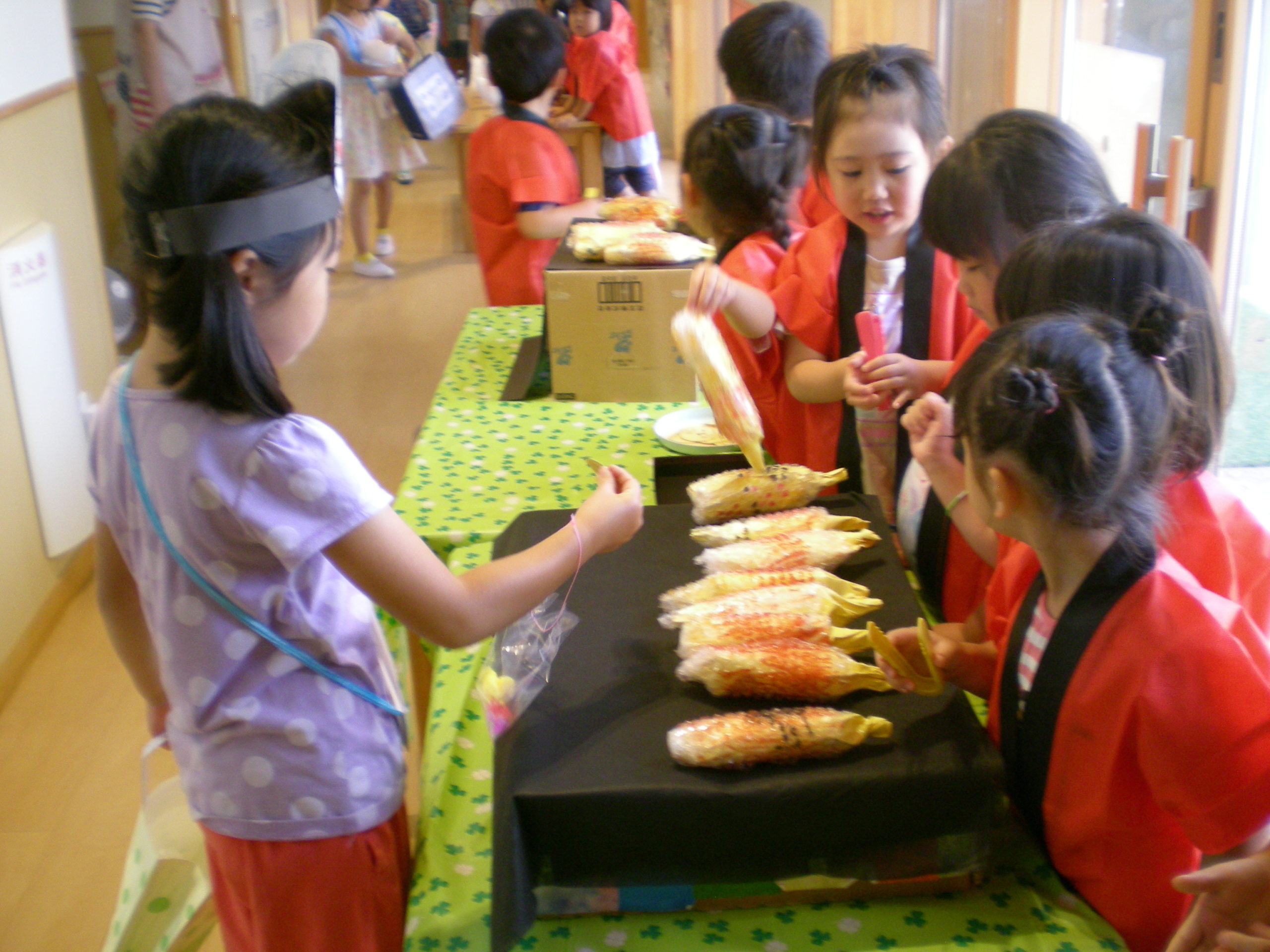 ゆり組(4歳児)は、やきとうもろこし屋さん。