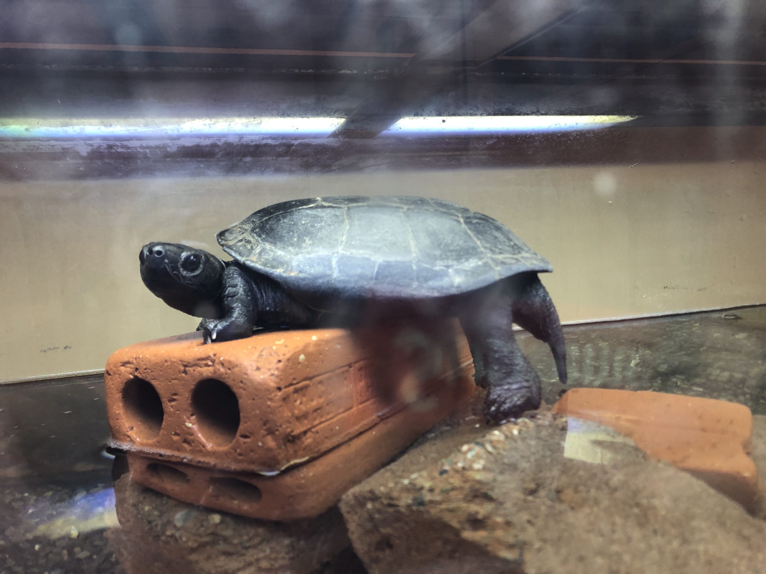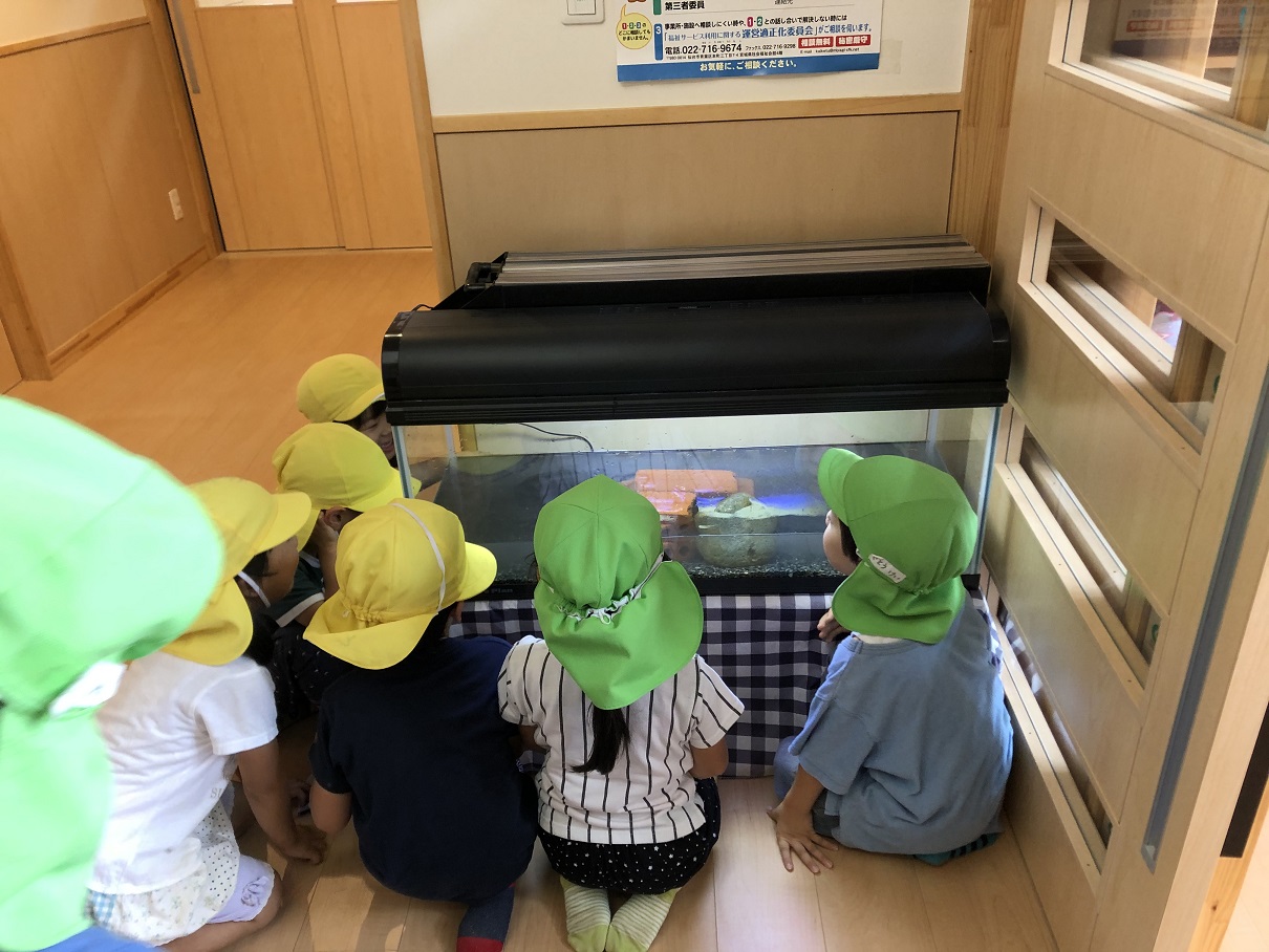 見やすくなって、子どもたちもこんな感じでカメさん鑑賞。