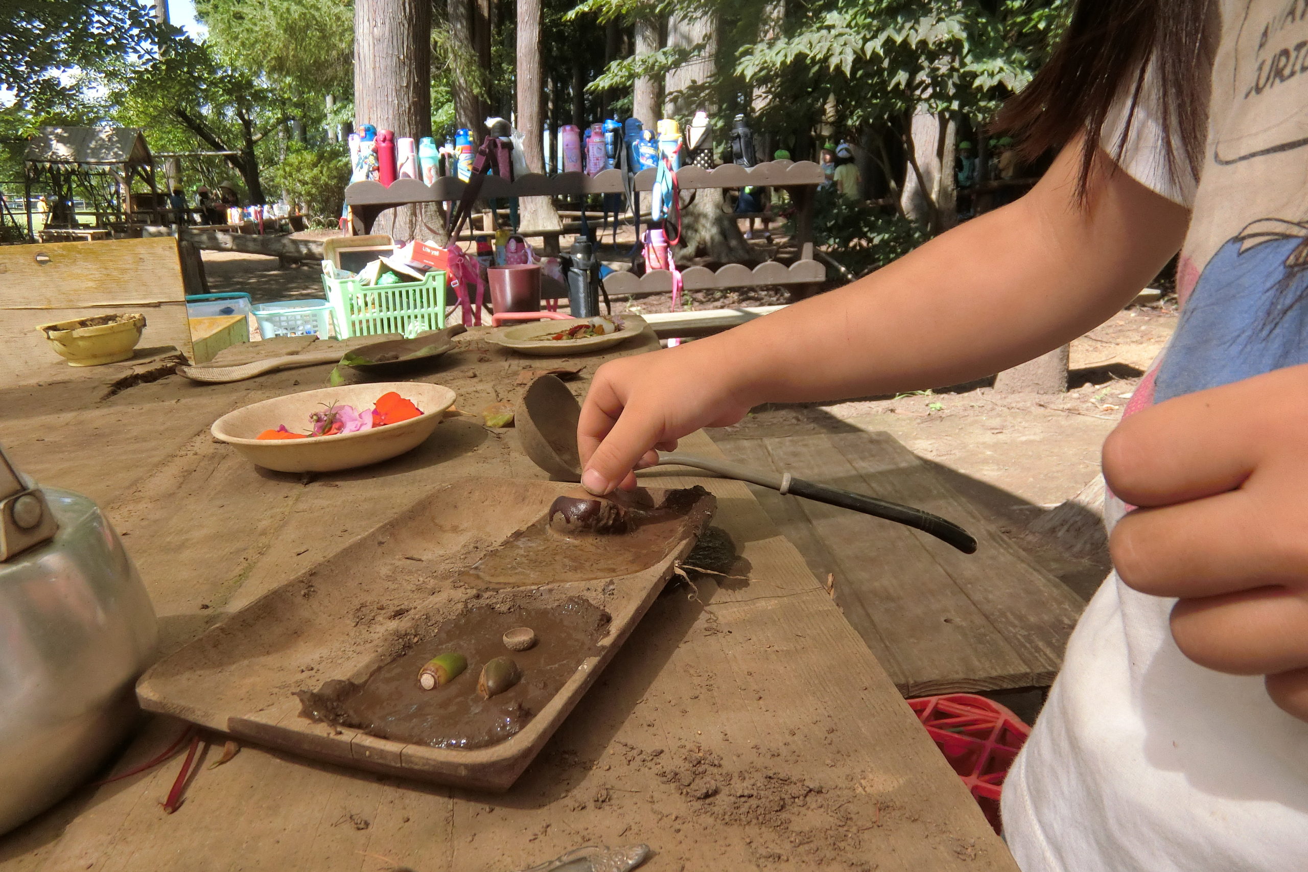 まずはどんぐりやとちの実で「木の実お子様ランチ」