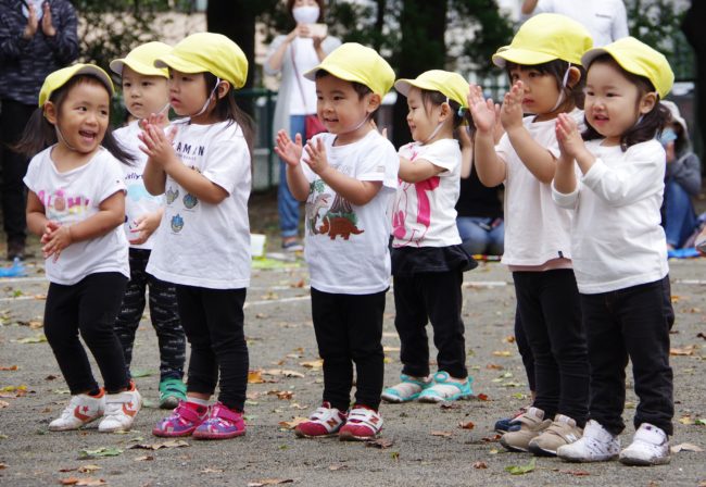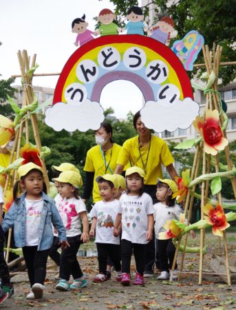 まずはⅠ部、入場曲に合わせて、うみ組(3歳児)と ひかり組(2歳児)が入場。