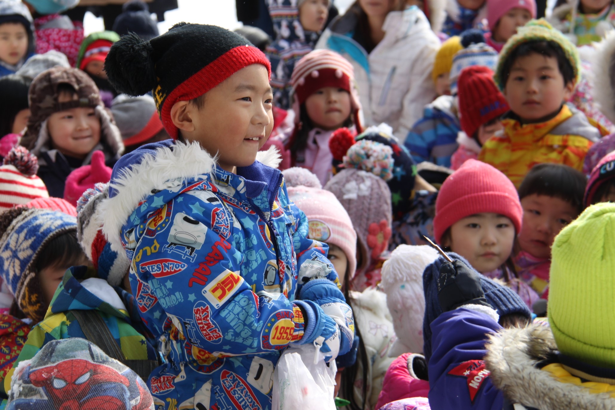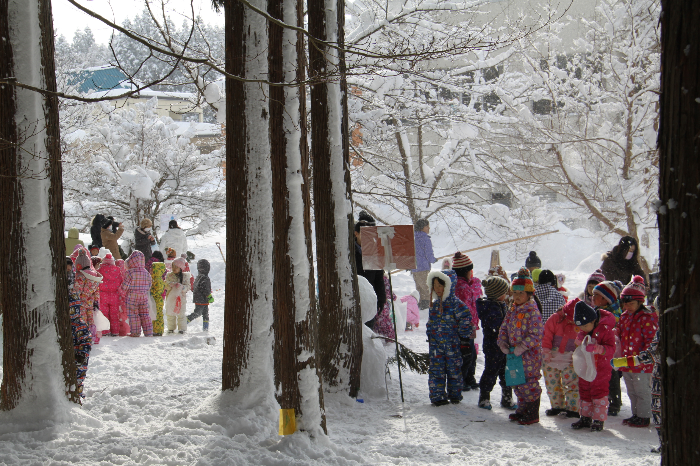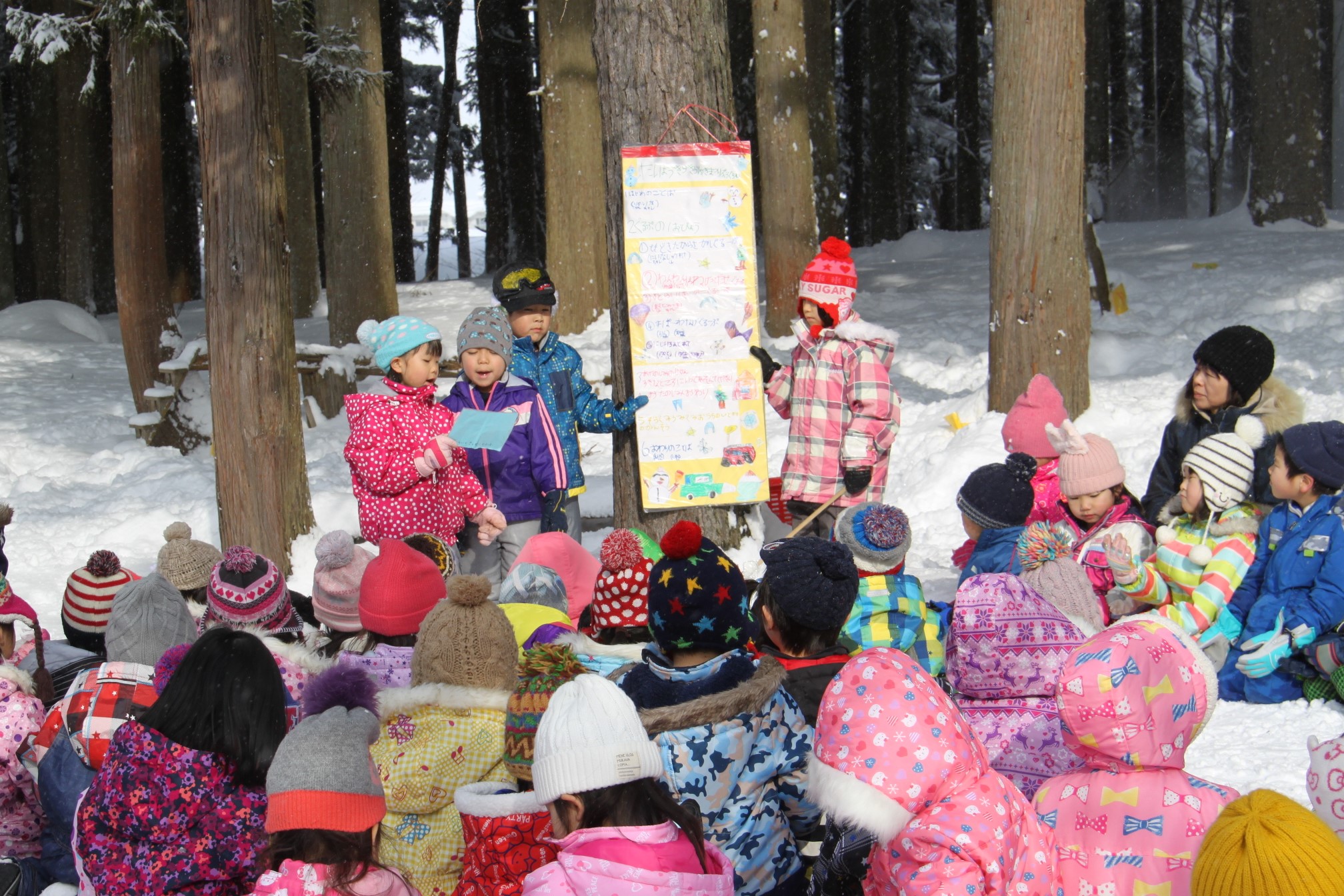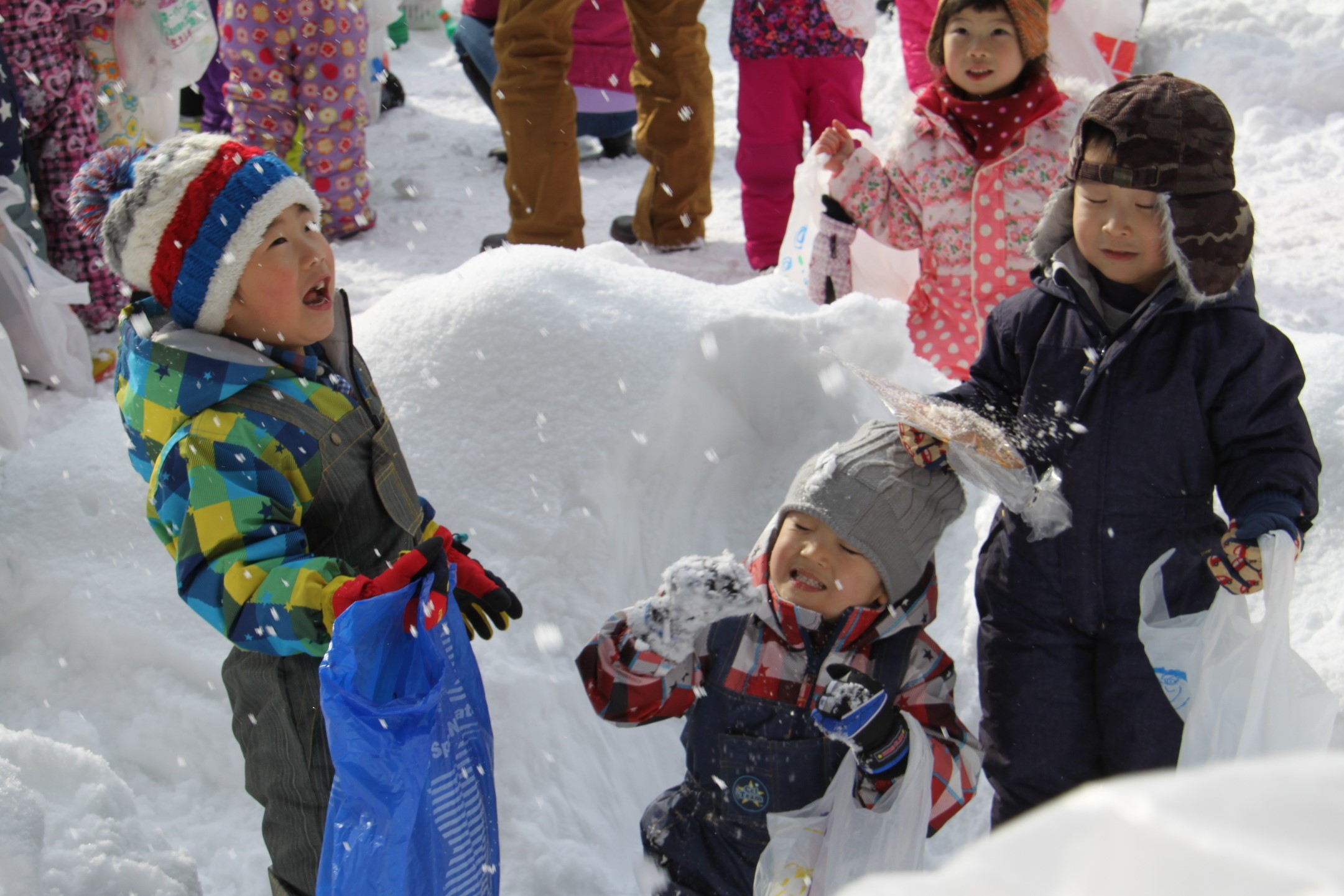 寒い毎日ですが、今日は天候にも恵まれ「たいよう きらきらゆきまつり」が行われました。年長組が今まで準備をして、年中と年少組の子ども達を招待しました。