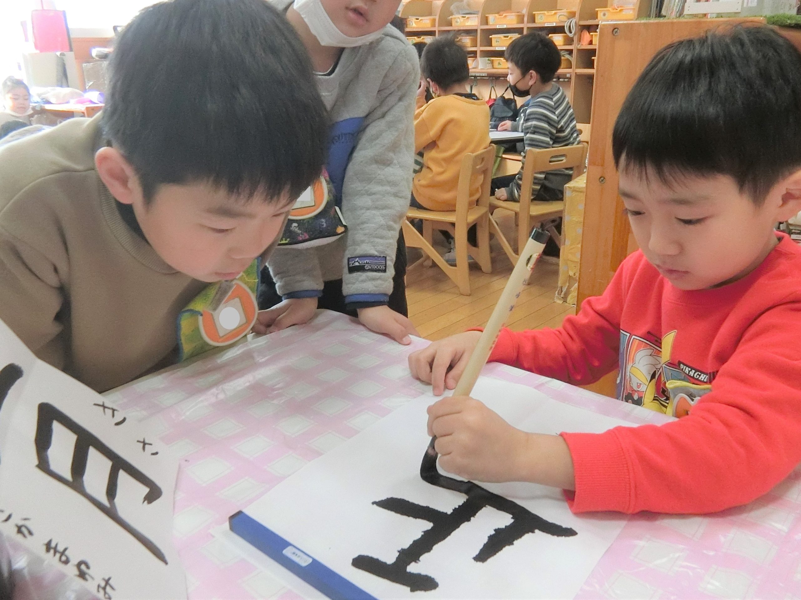 真剣な様子を周りのお友達もそっと見守ります。