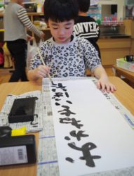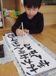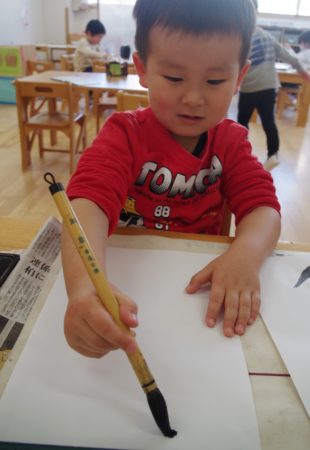 うみ組(3歳児)からは、書初めに挑戦!