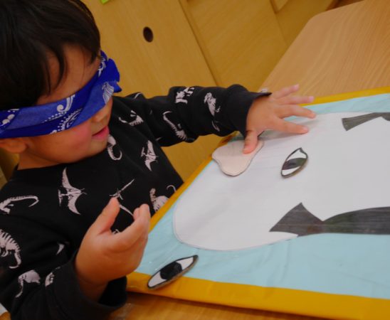 福笑いは目隠しをして、