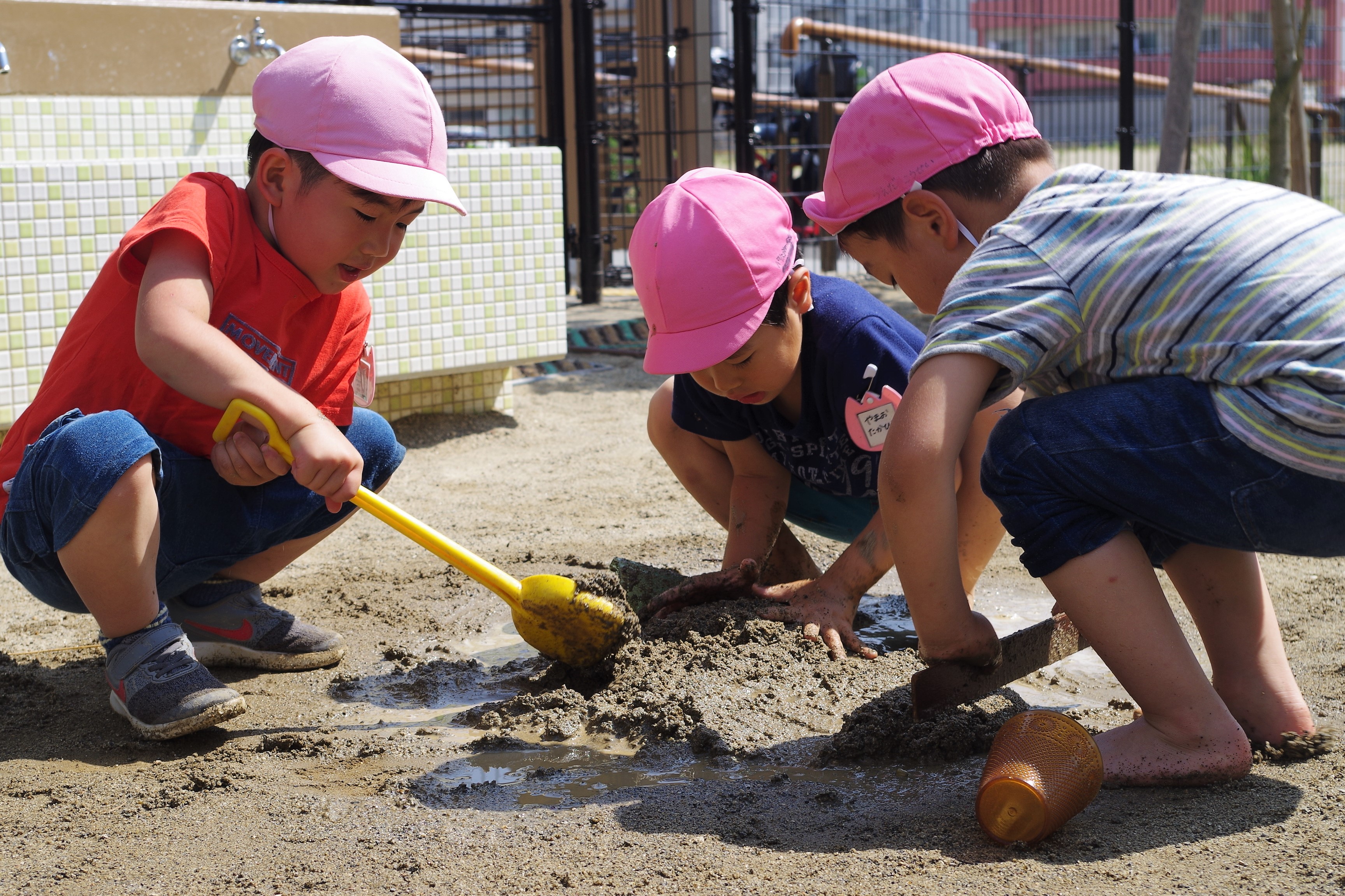 園庭では「工事する人」になりきり、ダム作りも流行ってます。