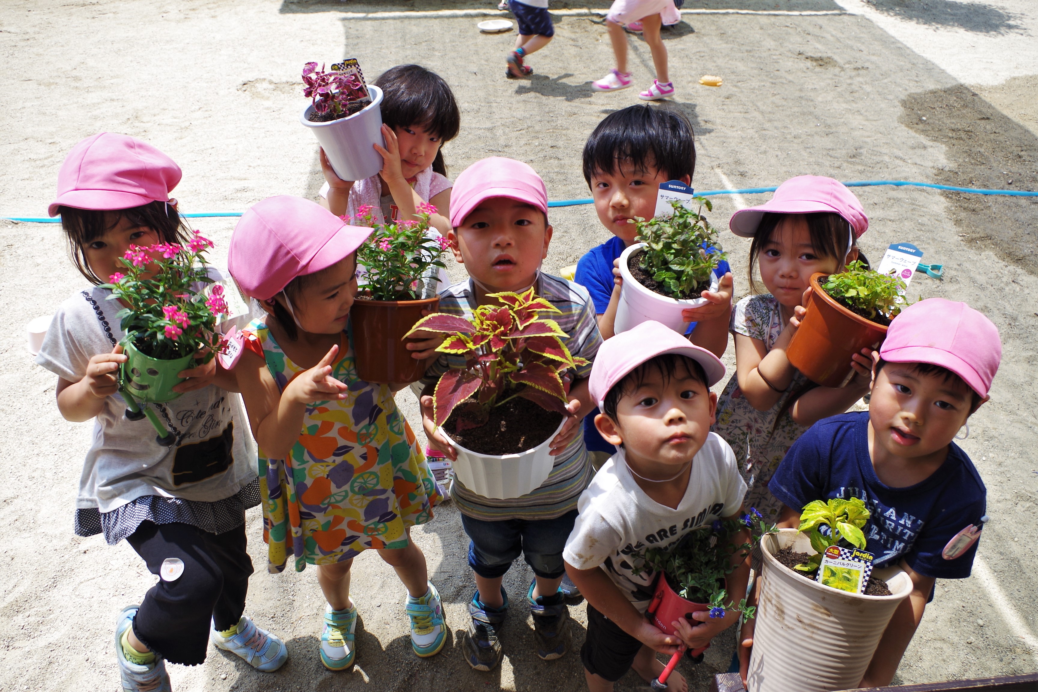 (玄関の前に置いてある花は子ども達が植えたものなので、是非送迎の際に見てみて下さい)
