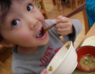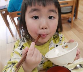 「お箸で食べたご飯はおいしいよ~!!」