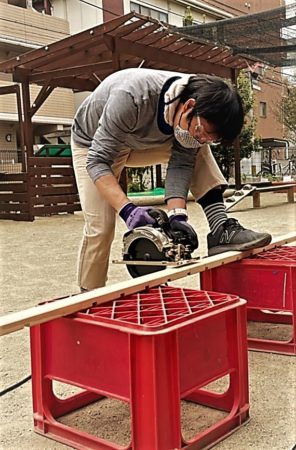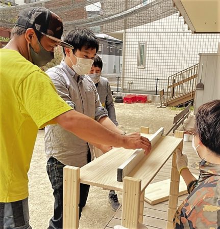 今回は、こども達が使用する「ピザ窯」と「棚」の制作に挑戦!!
