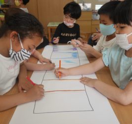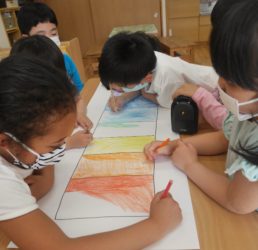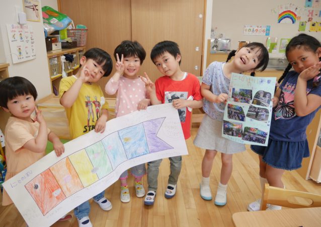 にじのぼりが揚がってから、たいよう組は「にじのぼりニュース」を作りました!