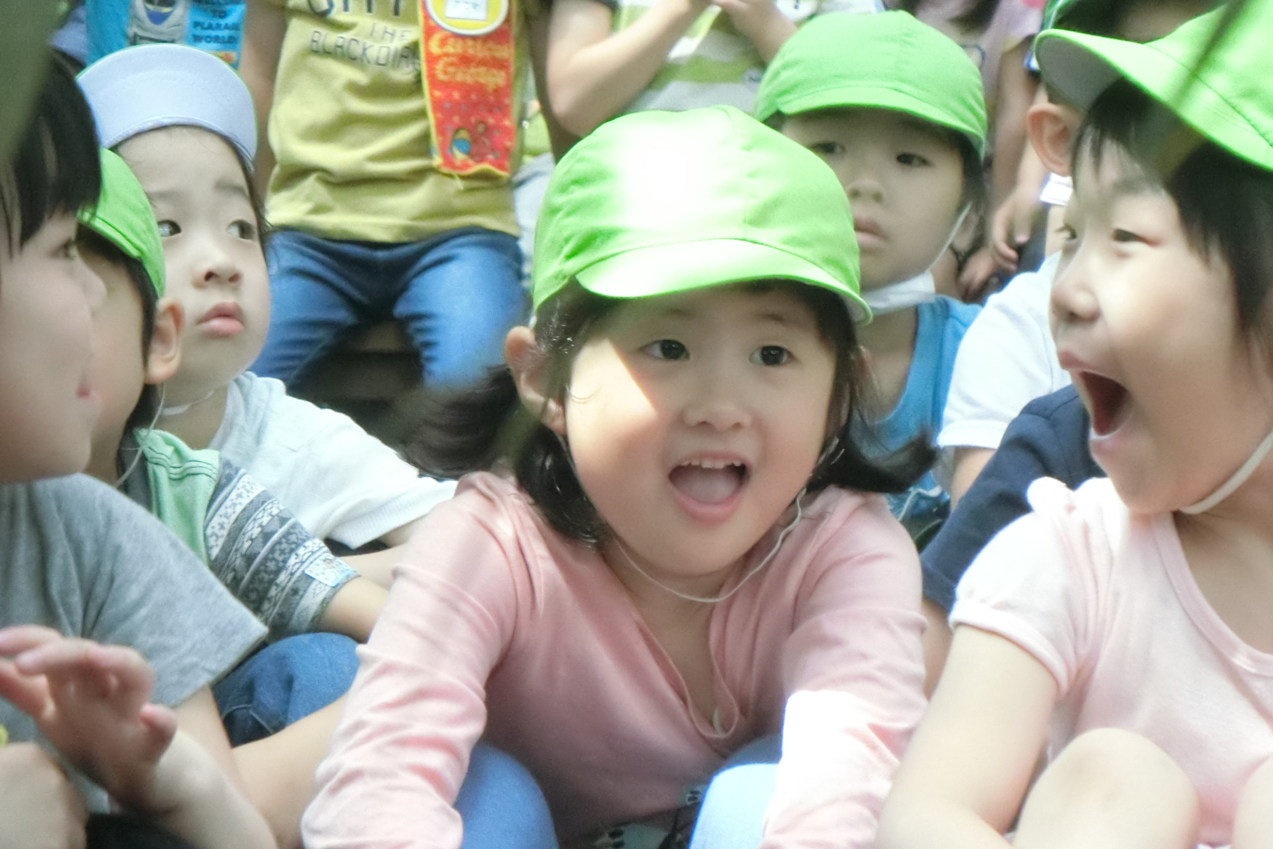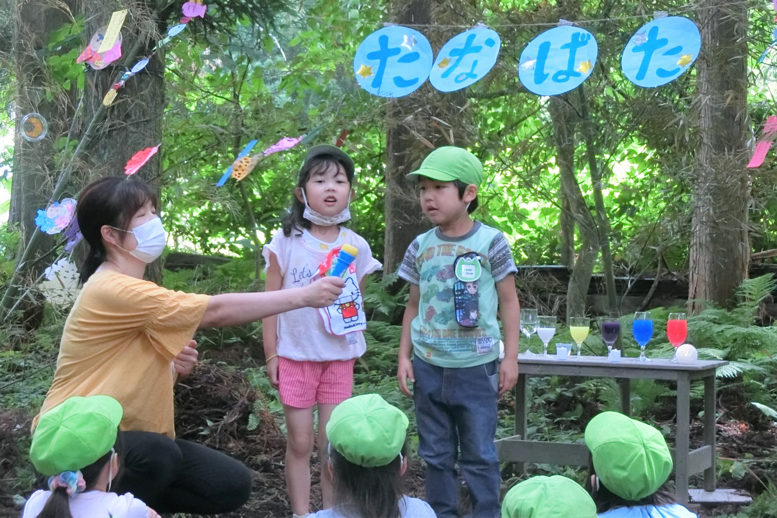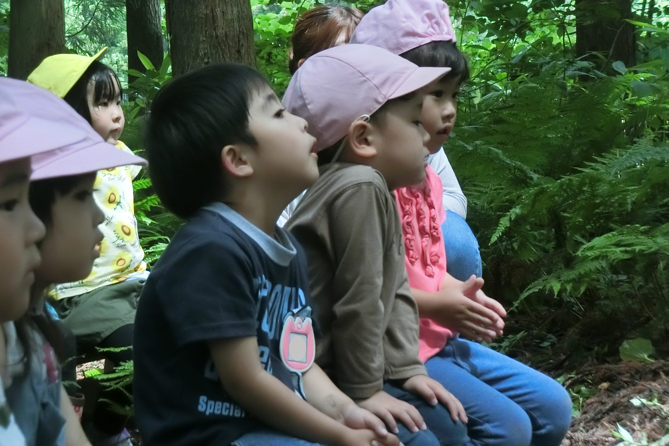 鳥の声が聞こえる中で歌ったり、ワイングラスから流れる音に聞き入ったり、子ども達には新鮮な驚きがあったようです。