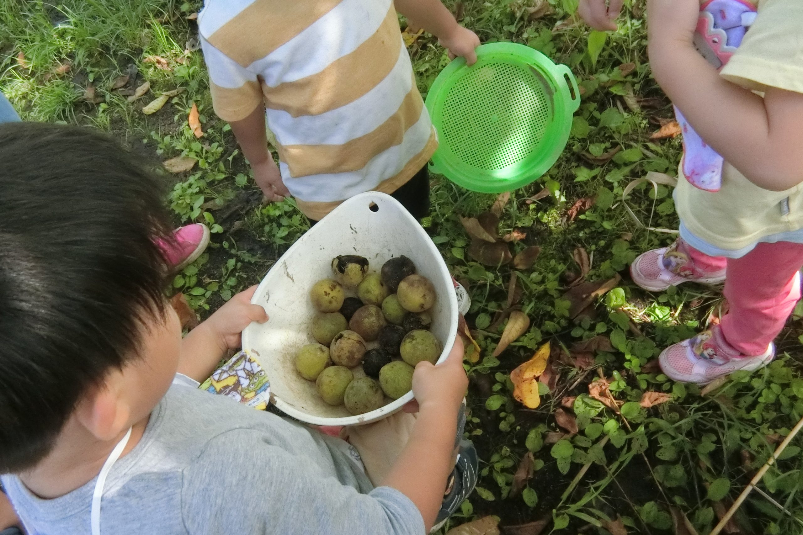 ある日うみ組(年少)の子ども達も木の実を発見!