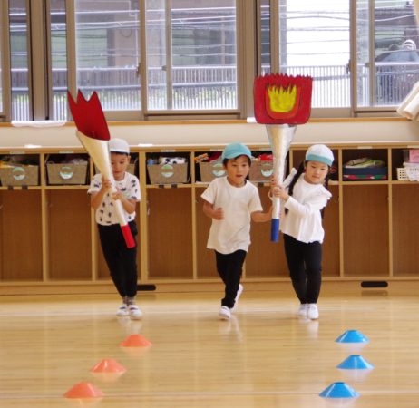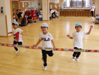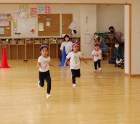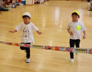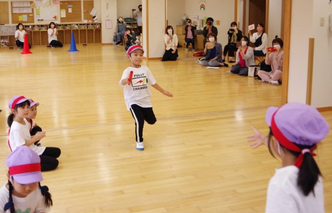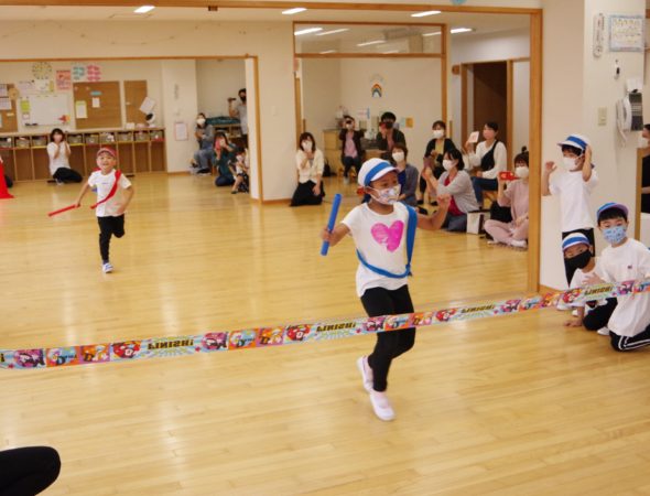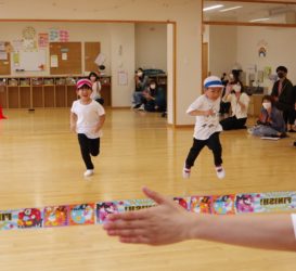 たいよう組のかけっこはターンもあり、抜きつ抜かれつつの見どころ満載。