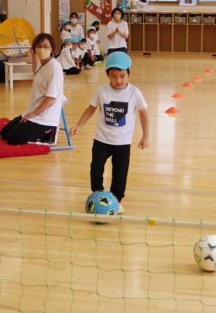 聖火を持って走った後に、サッカーボールをドリブルシュート!