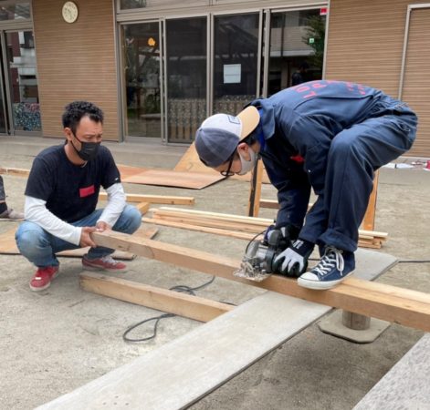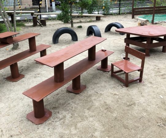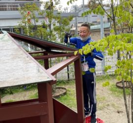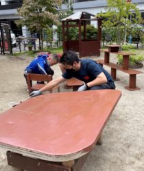 毎回参加してるお父さん達は、園庭にある傷んだ遊具の補修とペンキ塗りは手慣れたもの!