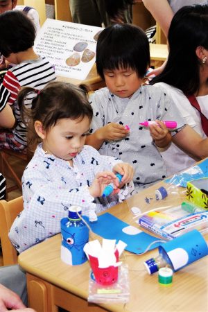 今回は「水族館」をテーマに子ども達の作品で園全体を装飾しました!