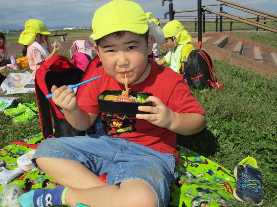 イモ掘りの後は、空港公園に移動してお弁当タイム🍱