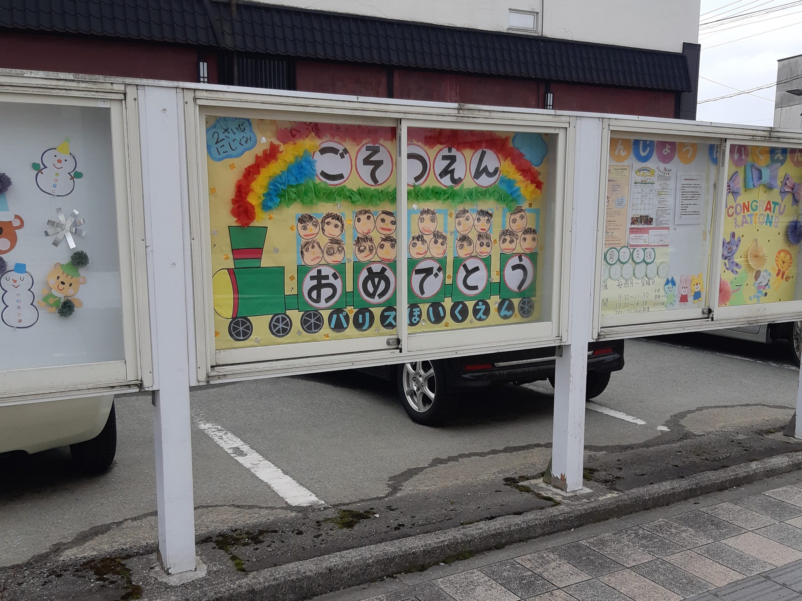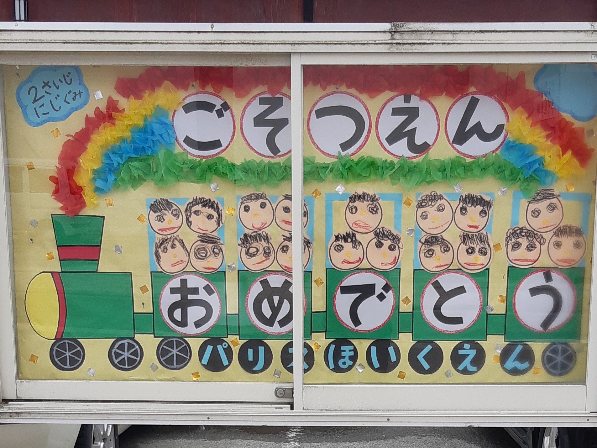 今月の街角アートは2歳児による「ご卒園おめでとう!」